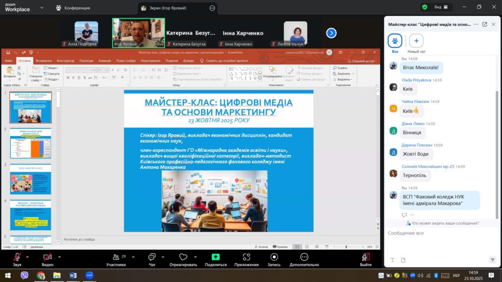 23 жовтня 2025 року здобувачі освіти 3 курсу спеціальності «072 Фінанси, банківська справа, страхування та фондовий ринок» разом із викладачем економічних дисциплін Подгорною А. О. взяли участь у майстер-класі до Дня маркетолога. Спікером заходу став Ігор Яровий — викладач економічних Детальніше