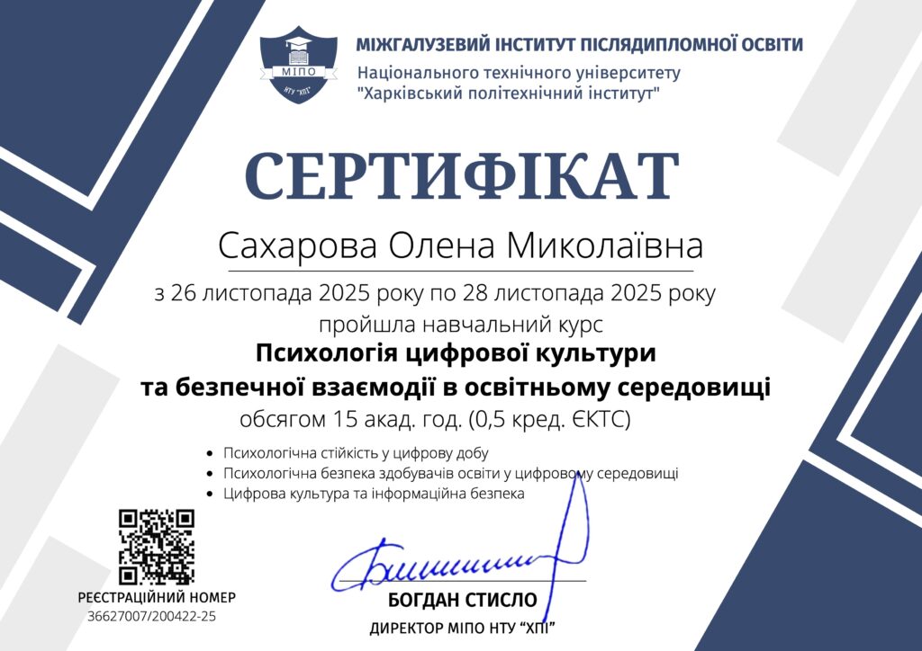 У сучасному світі, де інформаційні потоки стають дедалі складнішими, а цифрові загрози – витонченішими, професійний розвиток педагога неможливий без опанування медіагігієни. 10–11 лютого 2026 року викладачі нашого коледжу – Олександр Синявін та Надія Божко – взяли участь у масштабному Всеукраїнському Детальніше
