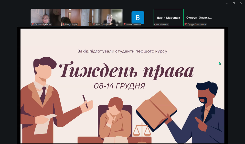 Правовий онлайн-батл до Тижня права в коледжі та Міжнародного дня прав людини 08 грудня 2025 року у нашому коледжі під керівництвом викладачки правових дисциплін Рукінової Світлани Сергіївни та за активної участі студентів спеціальності І10 «Соціальна робота та консультування» Марущак Дар’ї, Детальніше