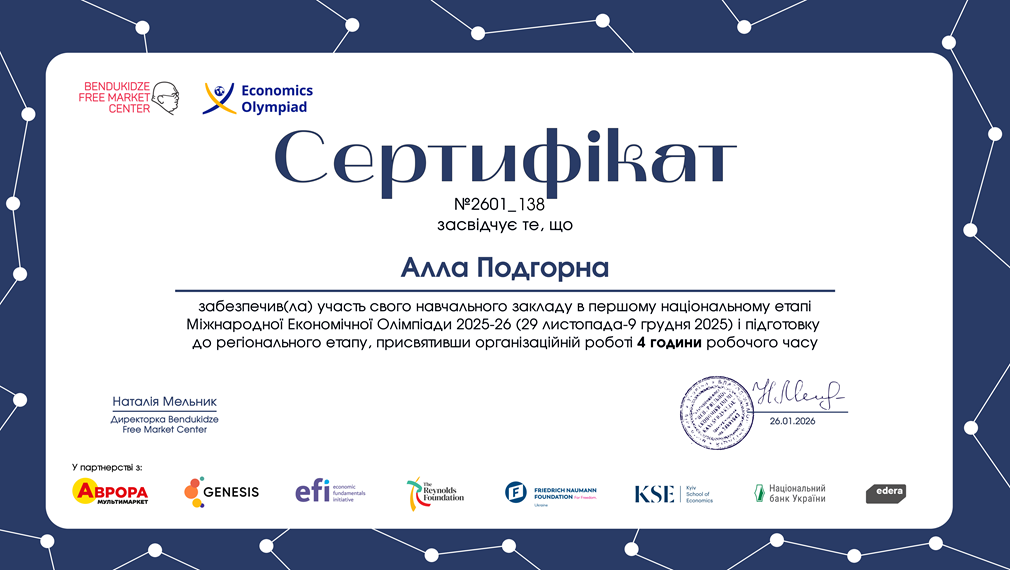 УЧАСТЬ У МІЖНАРОДНІЙ ЕКОНОМІЧНІЙ ОЛІМПІАДІ2025–2026