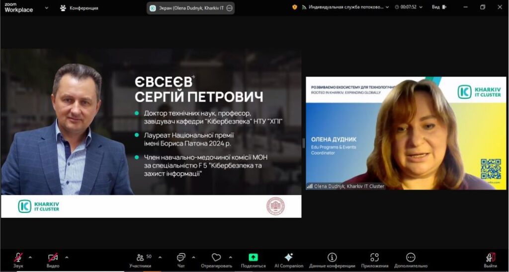 26 березня 2025 року викладачі коледжу Божко Н.В. і Синявін О.М. взяли участь у круглому столі «Кібербезпека та захист інформації: виклики та рішення сучасності», організованому Kharkiv IT Cluster. Захід відбувся онлайн на платформі Zoom і зібрав представників освітньої спільноти, ІТ-індустрії та Департаменту Кіберполіції.