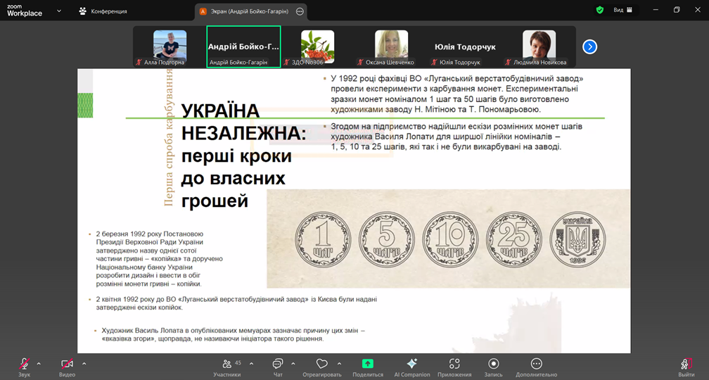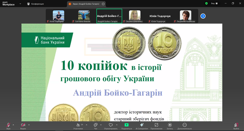 26 серпня 2025 р. викладачка фінансово-економічних дисциплін коледжу Алла Олександрівна Подгорна відвідала віртуальну екскурсію на тему «10 копійок в історії грошового обігу України», яку проводив Бойко-Гагарін Андрій Сергійович, доктор історичних наук та старший зберігач фондів Музею грошей Національного банку України.