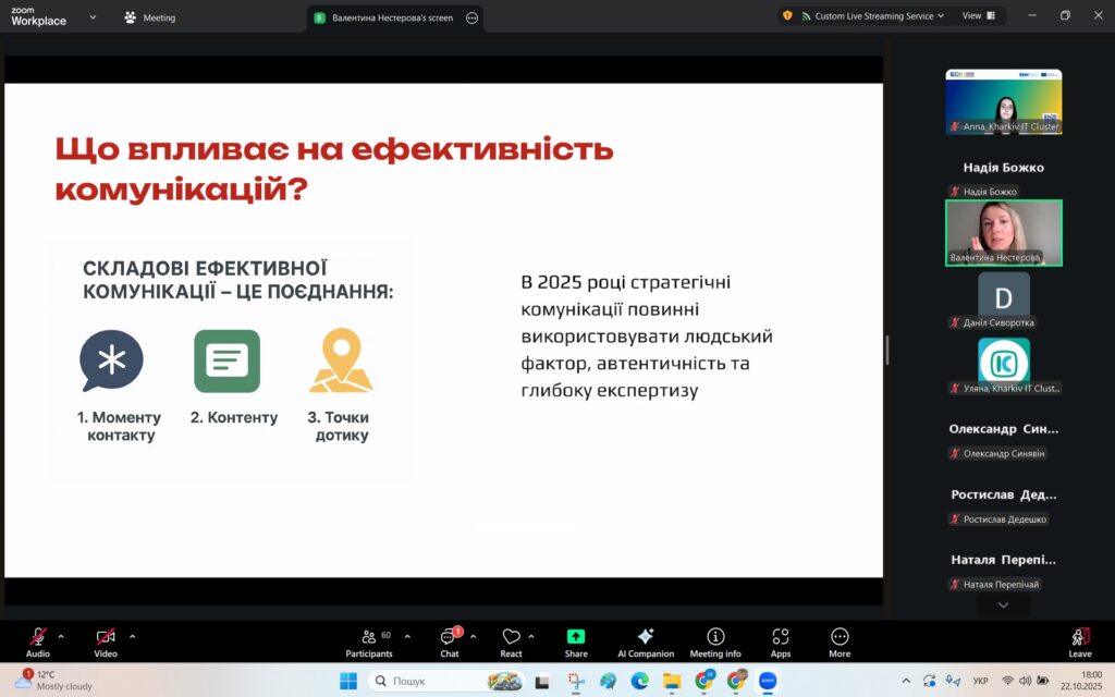 Особливу увагу приділили практичним аспектам – як зрозуміти, що комунікації справді працюють і приносять результат. Захід пройшов у динамічній та натхненній атмосфері, де кожен мав можливість поставити запитання та отримати корисні поради від фахівця.