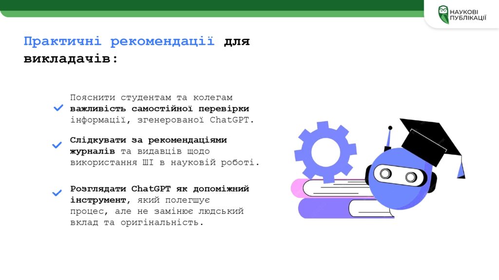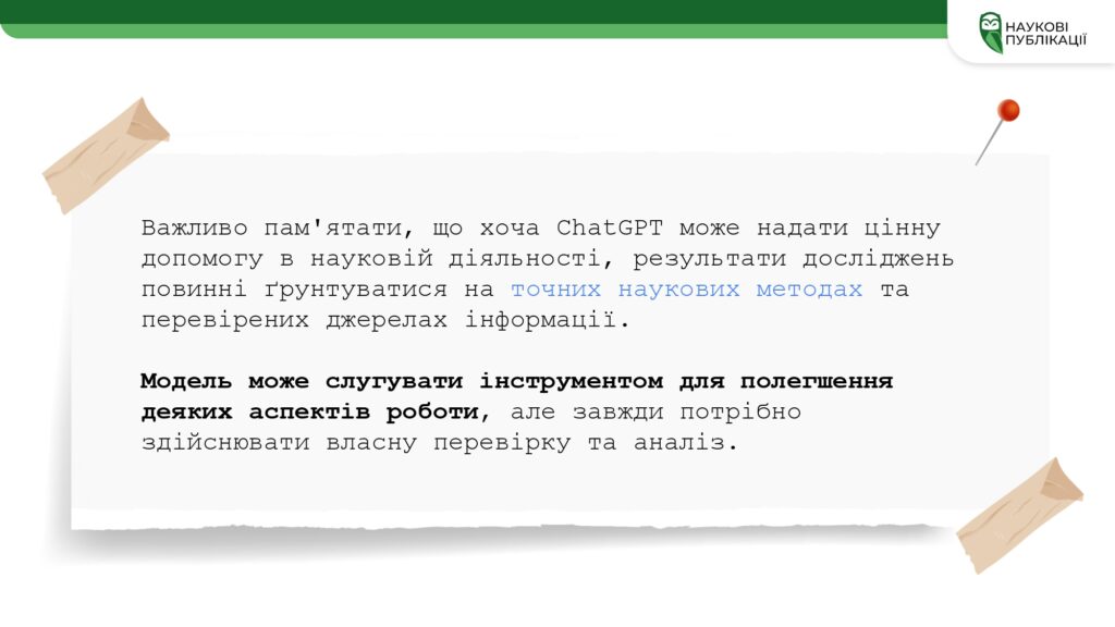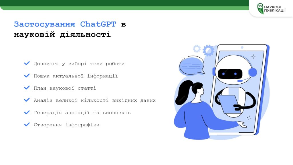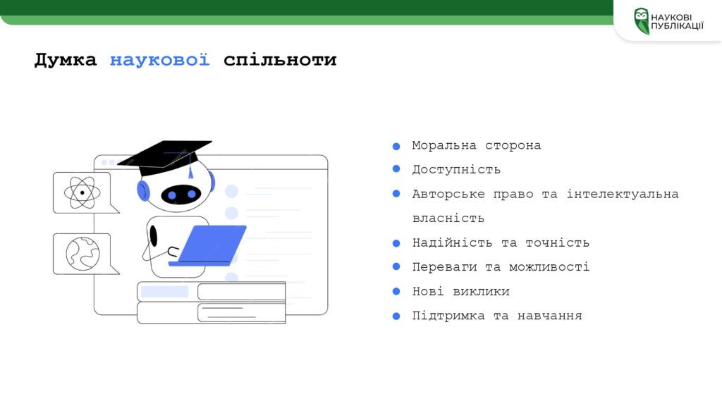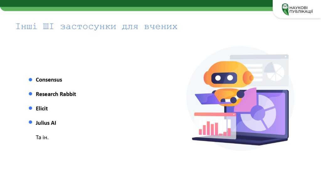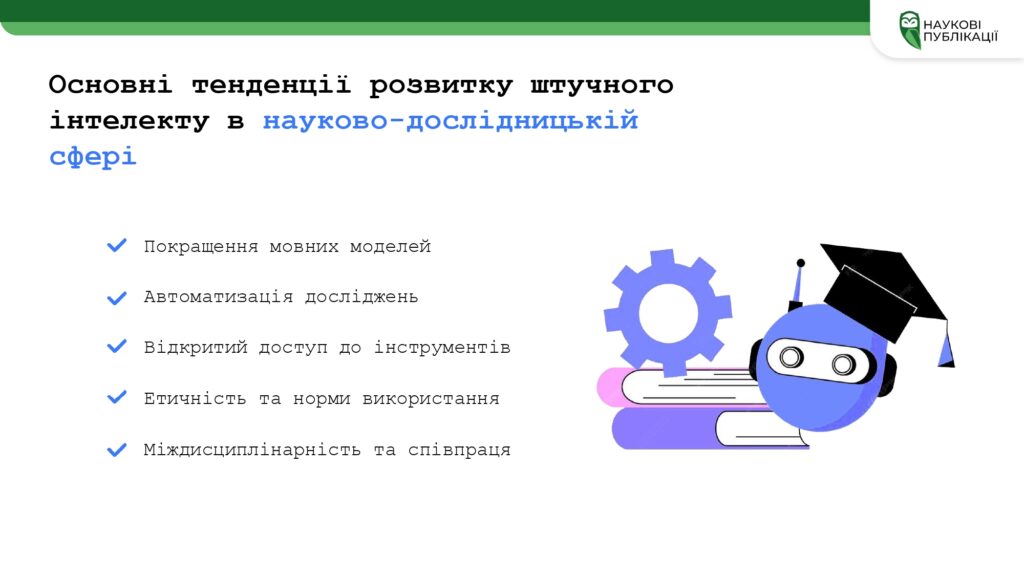 – інноваційні можливості застосування ШІ в наукових дослідженнях;
