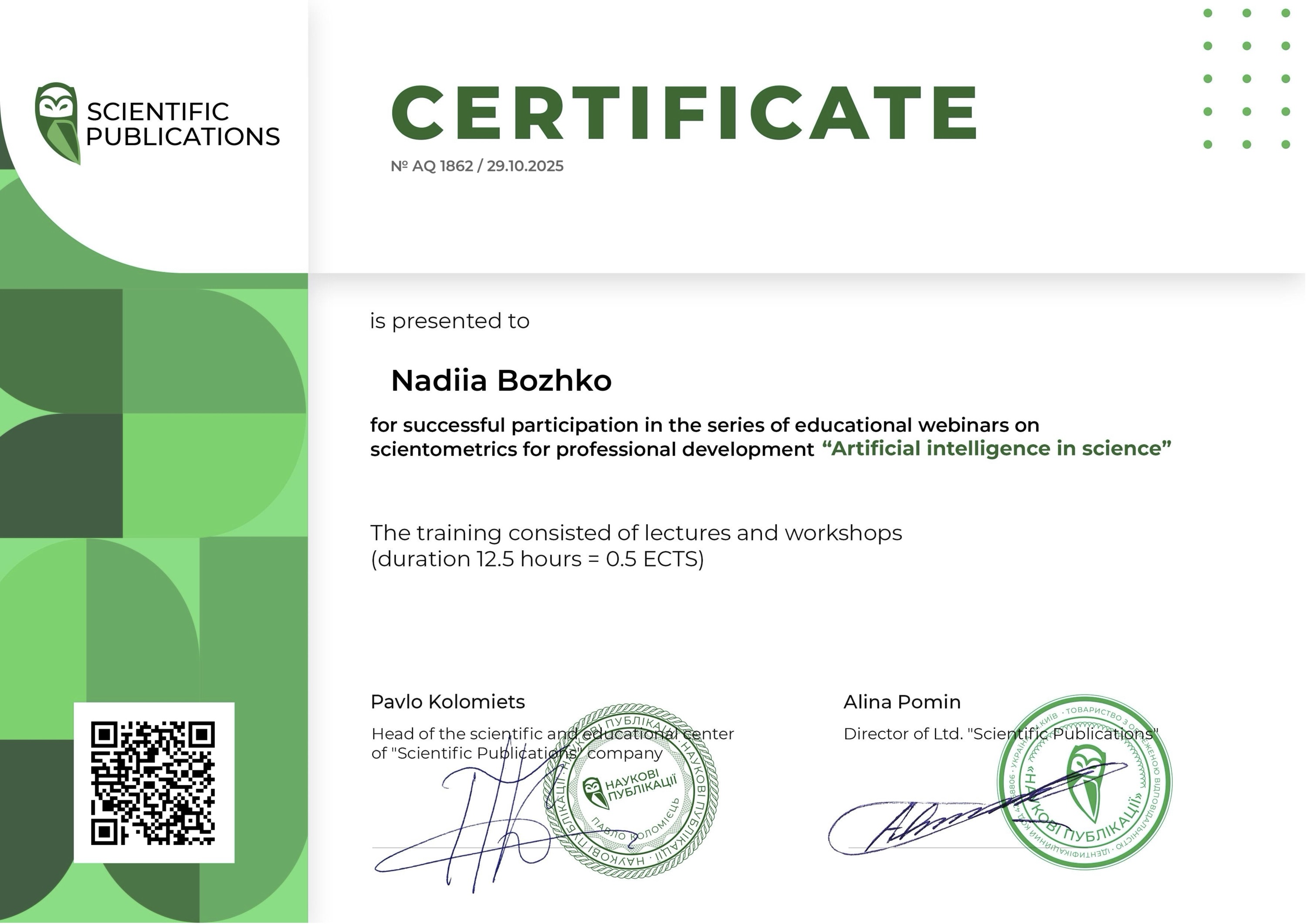 28 жовтня 2025 року викладачі коледжу Божко Надія та Синявін Олександр взяли активну участь у вебінарі з наукометрії «Використання ChatGPT в науково-дослідницькій діяльності», організованому науково-навчальним центром компанії «Наукові Публікації».