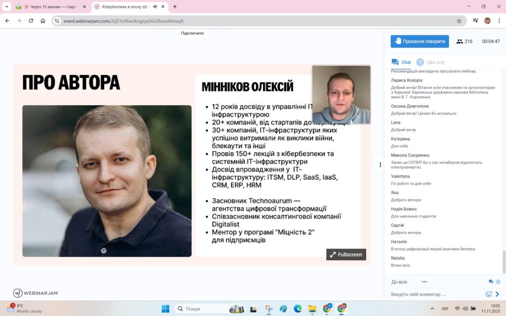 Вебінар став чудовою нагодою для студентів та викладачів поглянути на кібербезпеку крізь призму нових технологій – не лише теоретично, а й практично.