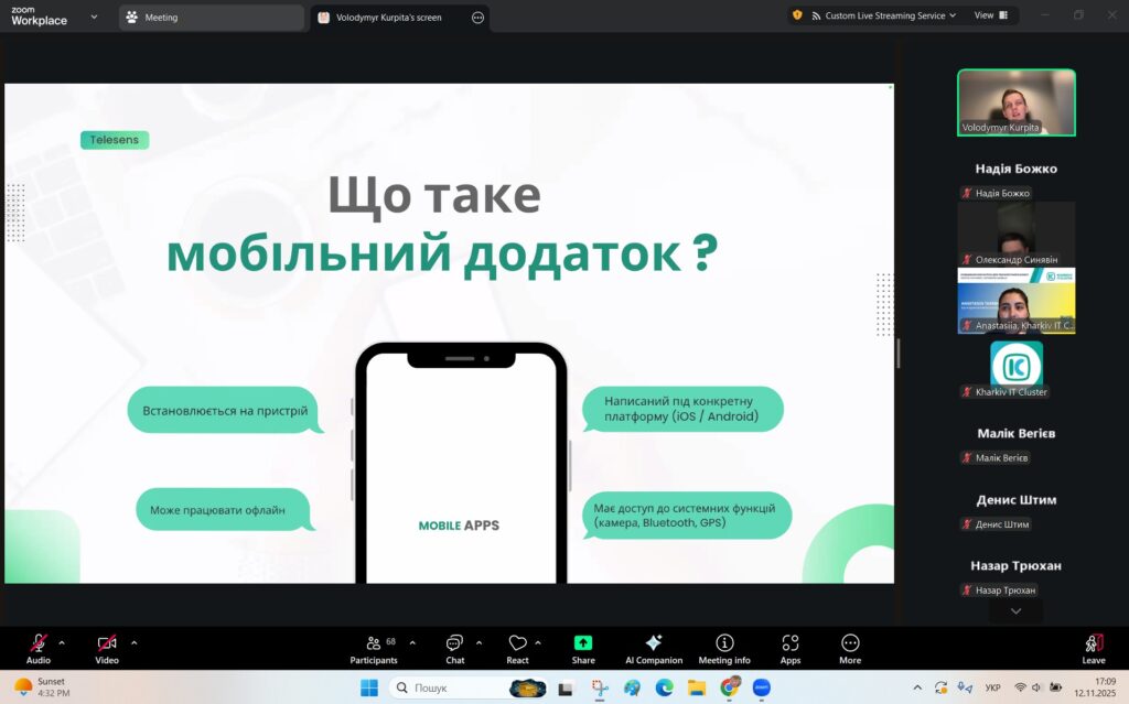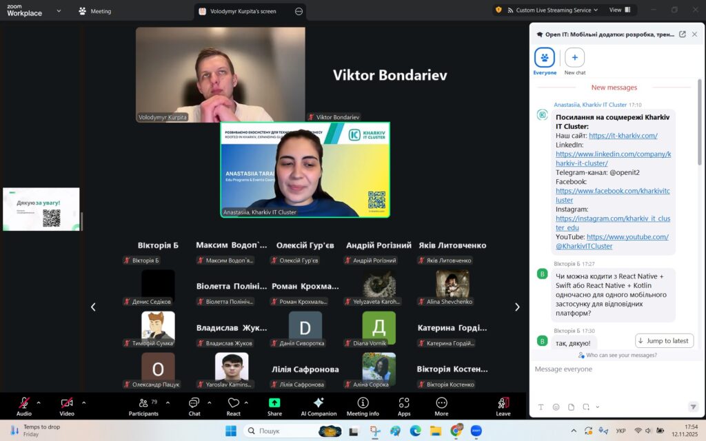 12 листопада 2025 року студенти спеціальностей F3 «Комп’ютерні науки» та F7/123 «Комп’ютерна інженерія» разом із викладачами Надією Божко та Олександром Синявіним взяли участь у вебінарі серії Open IT на тему «Мобільні додатки: розробка, тренди та майбутнє мобільних технологій».