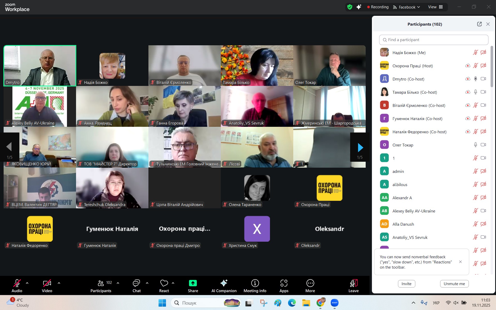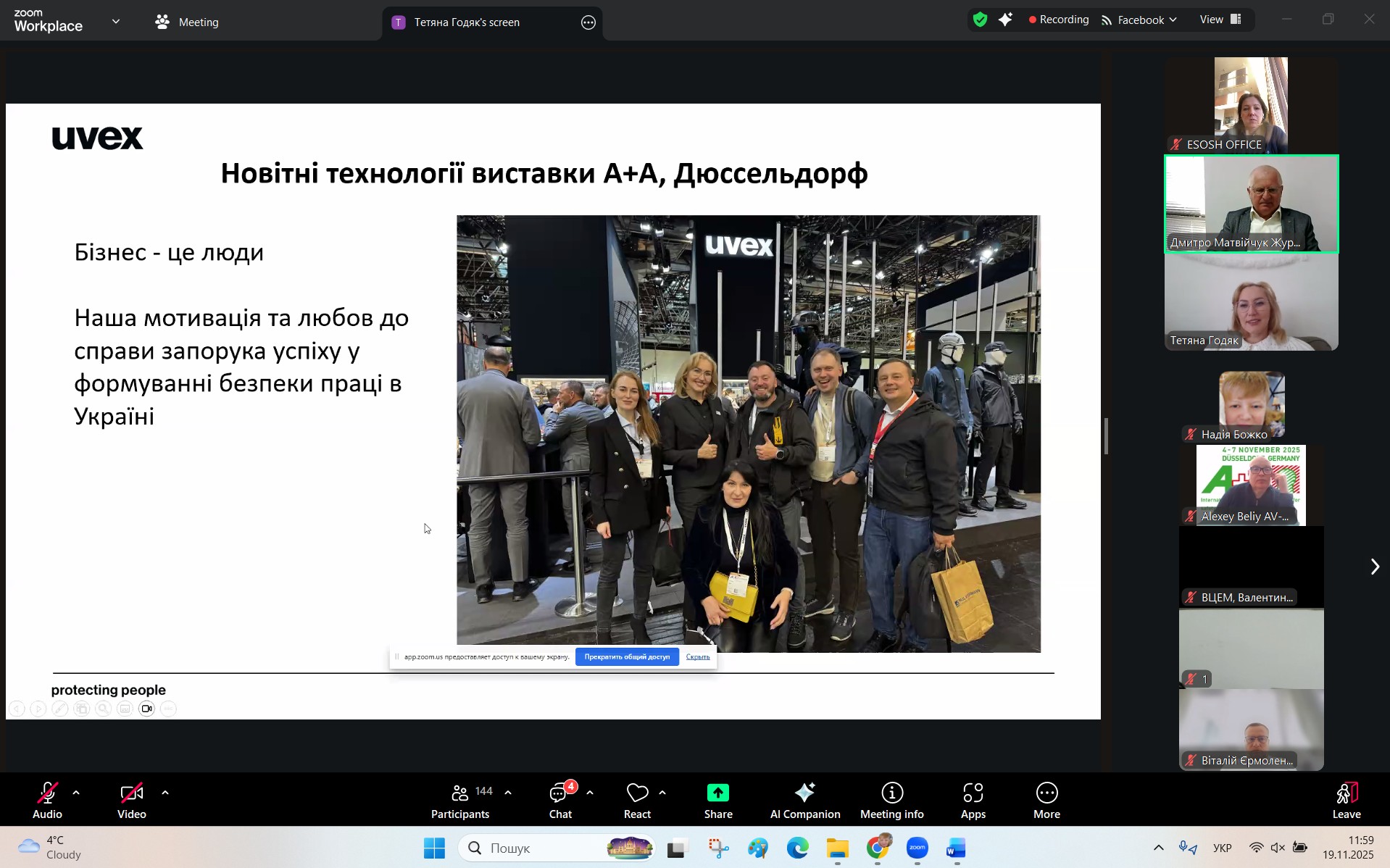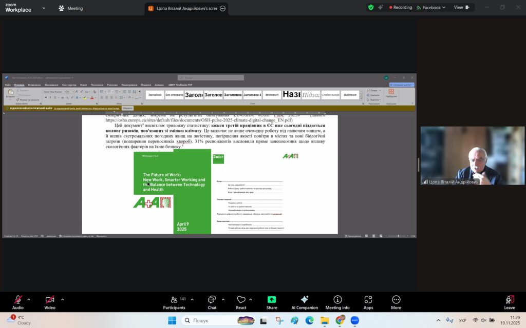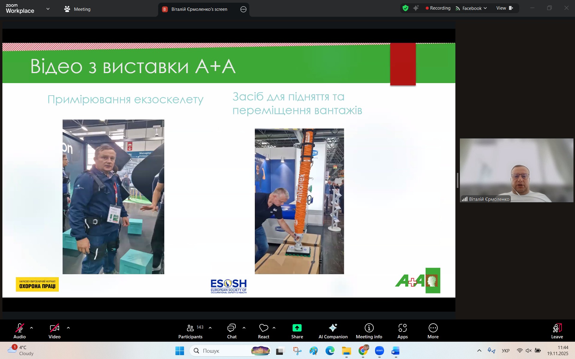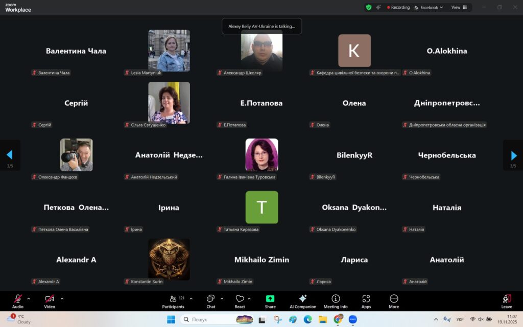 19 листопада 2025 року викладачі Божко Надія Валеріївна та Синявін Олександр Миколайович долучилися до фахового вебінару на тему: «Світові тенденції у сфері безпеки та здоров’я на роботі. Підсумки Міжнародної виставки «А+А» в Дюссельдорфі», організованого редакцією журналу «Охорона праці».