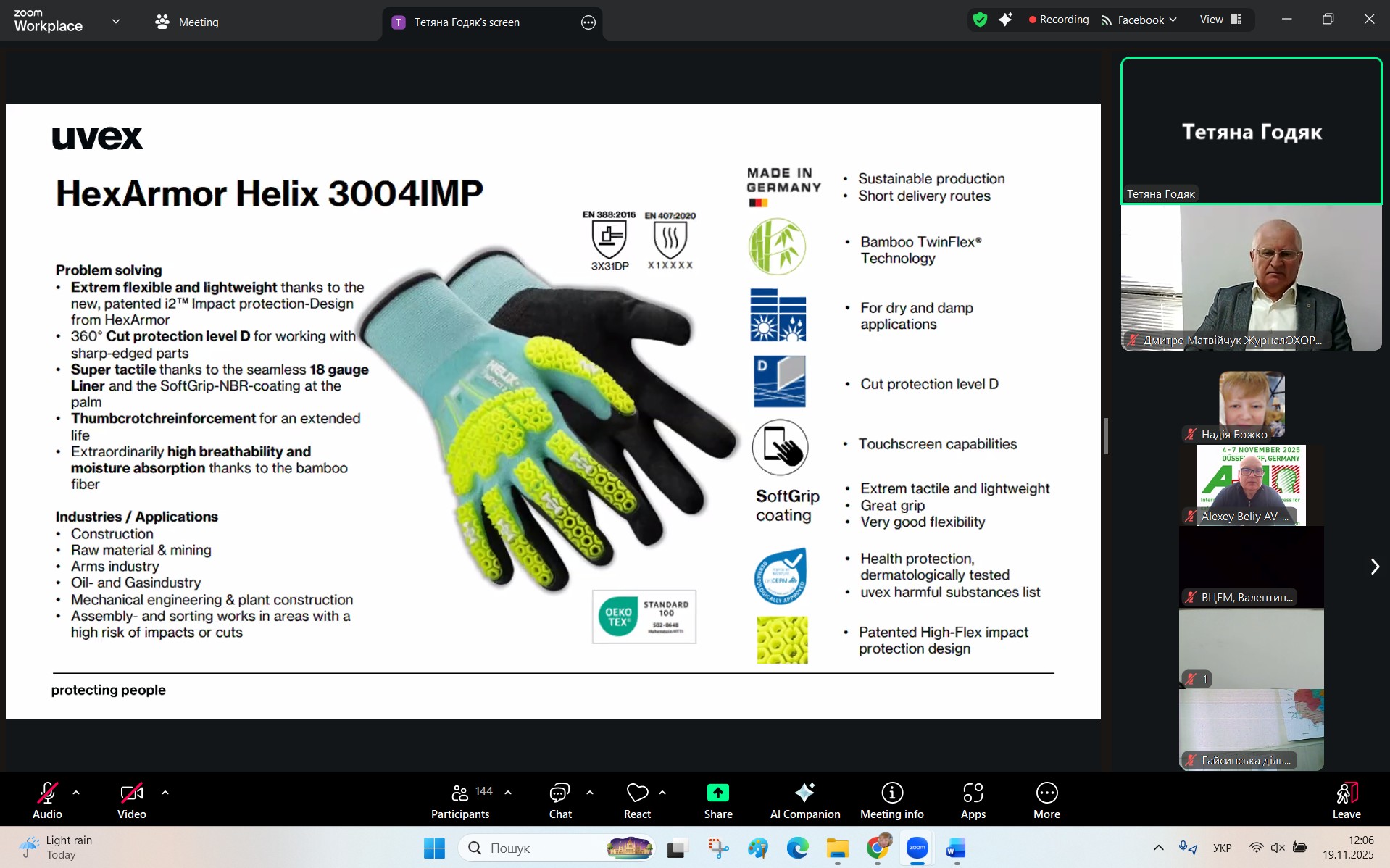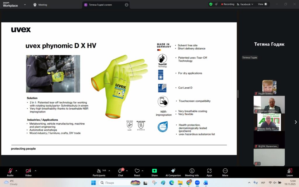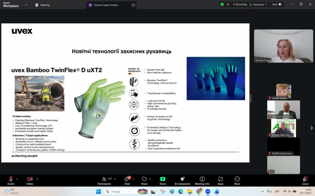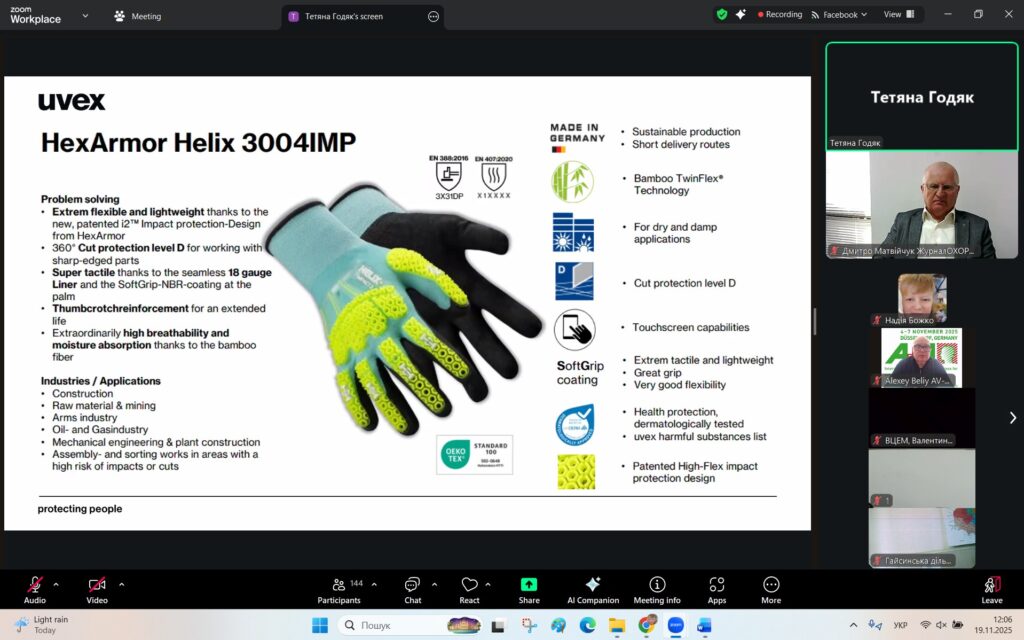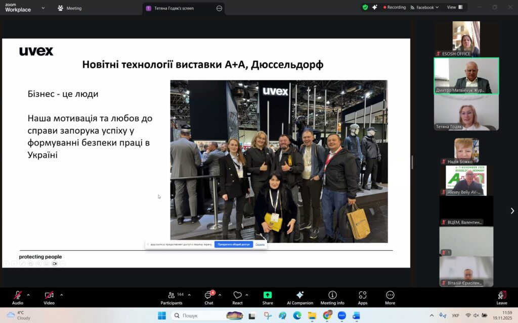 Під час вебінару учасники отримали актуальну інформацію про сучасні міжнародні підходи до забезпечення безпеки праці, новітні технології та інновації у сфері охорони здоров’я працівників. Особливу увагу було приділено результатам та ключовим тенденціям, представленим на найбільшій у світі виставці засобів індивідуального захисту, промислової безпеки та охорони праці «A+A» у Дюссельдорфі.