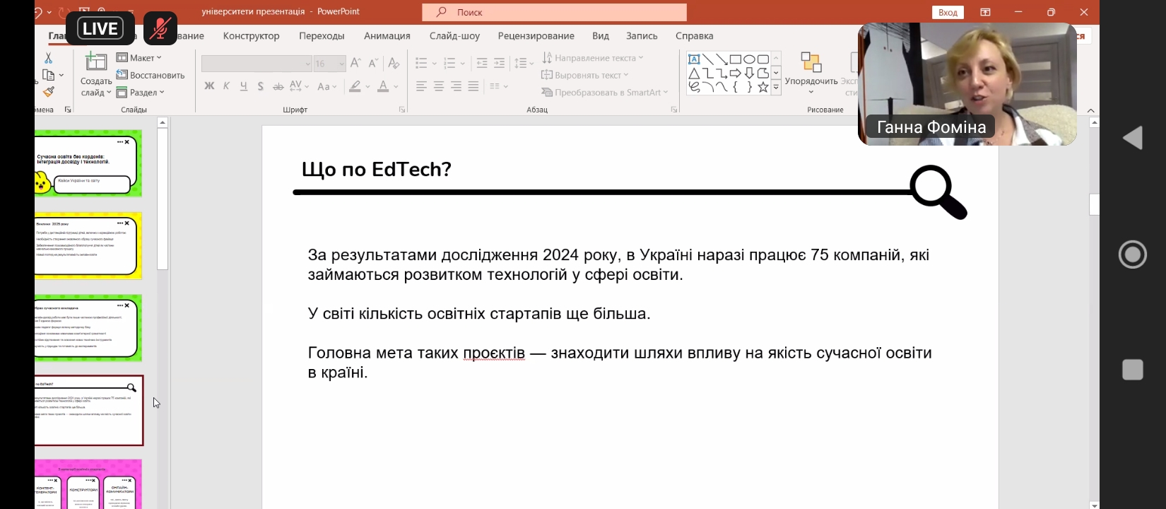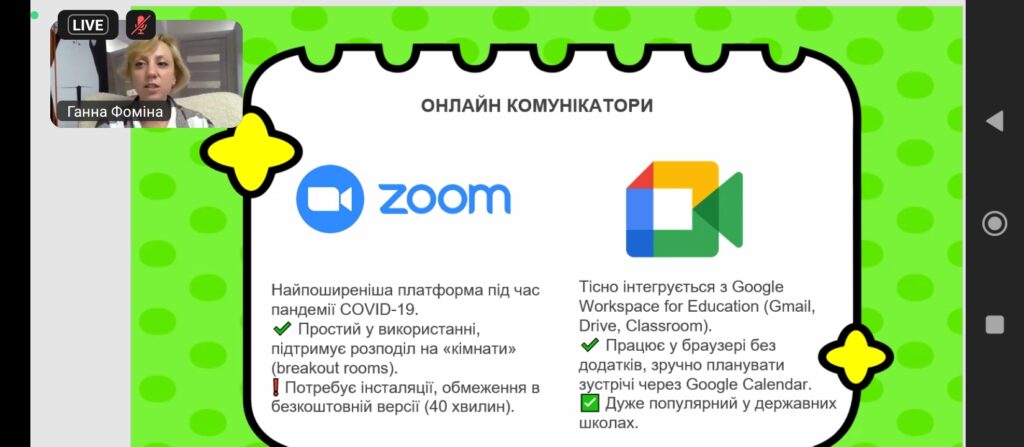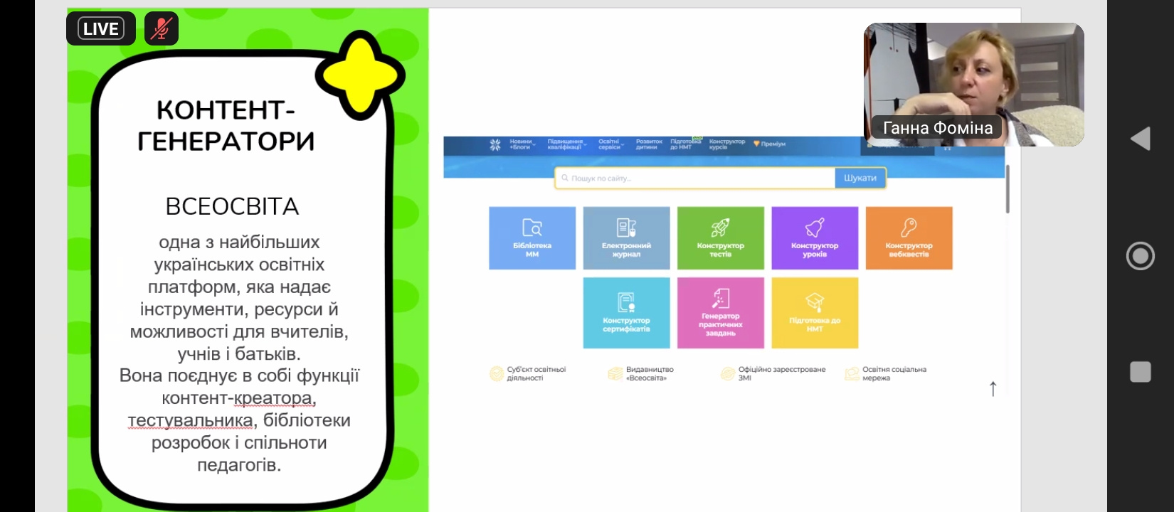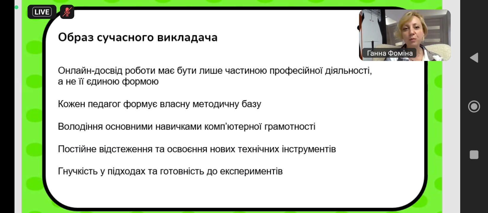 Під час вебінару учасники розглянули, як зробити онлайн-уроки захопливими та «живими», як підтримувати довіру та емоційний контакт із студентами, як використовувати інтерактивність як інструмент мотивації та перетворювати сучасні технології на ефективних союзників у процесі навчання. Викладачі отримали цінні практичні поради й інструменти, що сприятимуть підвищенню якості освітнього процесу та впровадженню інтерактивних методик у навчальний простір коледжу.