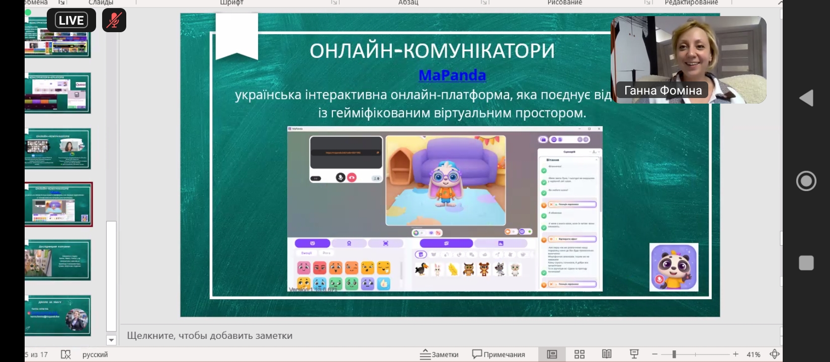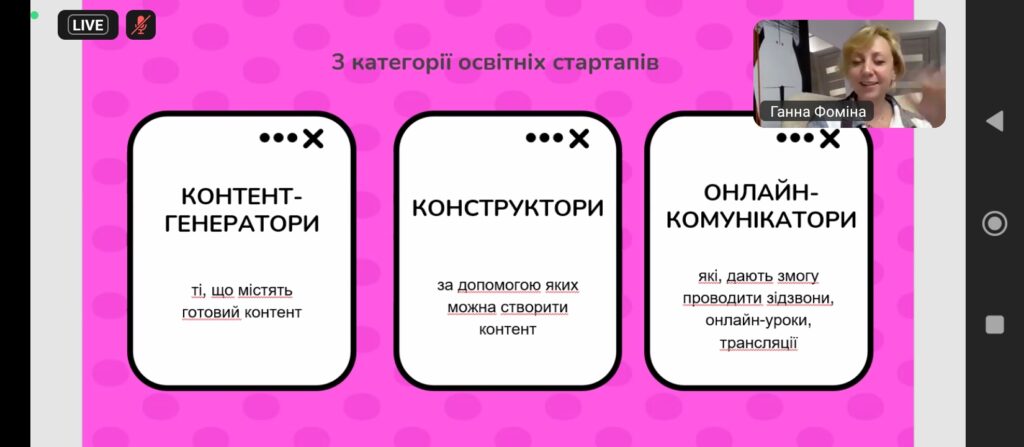 20 листопада 2025 року викладачі нашого коледжу Божко Надія Валеріївна та Синявін Олександр Миколайович взяли активну участь у професійному вебінарі Teachers2IT на тему «Інтерактивні технології та гра в освіті: сучасні інструменти мотивації», що проходив у форматі онлайн на платформі ZOOM. Спікеркою заходу виступила Ганна Фоміна – продакт-менеджерка в MaPanda.