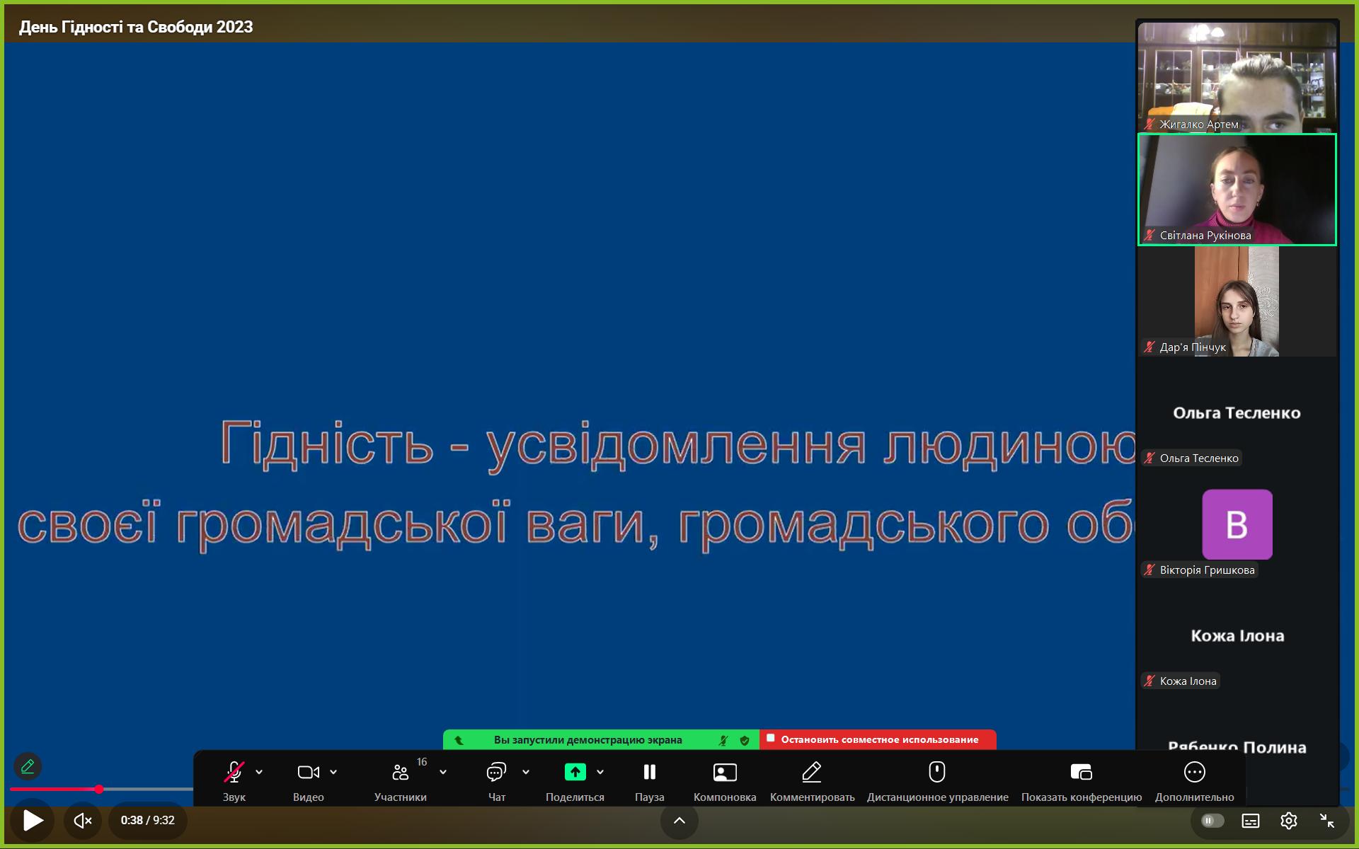 Так, куратор 115 та 125 академічних груп Світлана Рукінова для забезпечення змістовного діалогу провела дискусійний клуб, де здобувачі освіти обговорили цитати відомих українських діячів та сучасних мислителів та переглянули презентацію про сучасні символи української незламності.