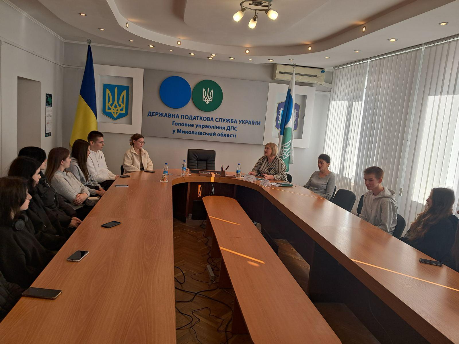 25 листопада 2025 р. студенти спеціальності «Фінанси, банківська справа, страхування та фондовий ринок» разом із викладачем Подгорною А. О. здійснили пізнавальний візит до Головного управління Державної податкової служби у Миколаївській області. Ця зустріч стала важливою частиною фахової підготовки, адже поєднала теоретичні знання із реальним досвідом роботи державної фінансової структури.