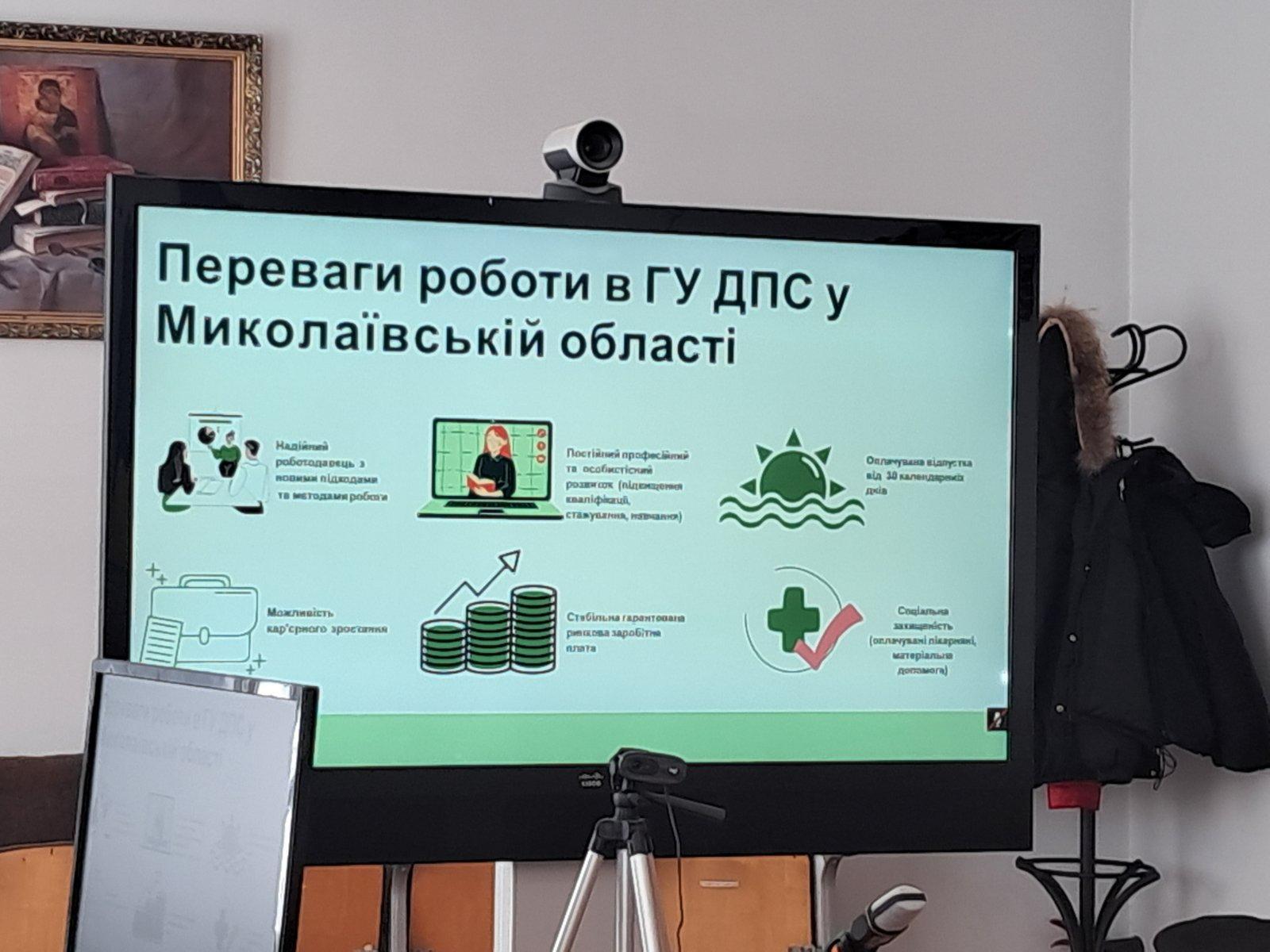 У стінах ГУ ДПС студентів привітали фахівці служби та представили інформаційну презентацію про переваги роботи в податковій сфері. Молодь ознайомилася з можливостями професійного розвитку, умовами праці, соціальними гарантіями та перспективами кар’єрного зростання. Особливу увагу спікери приділили сучасним підходам до адміністрування податків, цифровим інструментам та ролі ДПС у забезпеченні фінансової стабільності держави. Студенти дізналися, як працює податковий контроль, чому важливо формувати податкову культуру та які навички цінуються у майбутніх фінансистів.