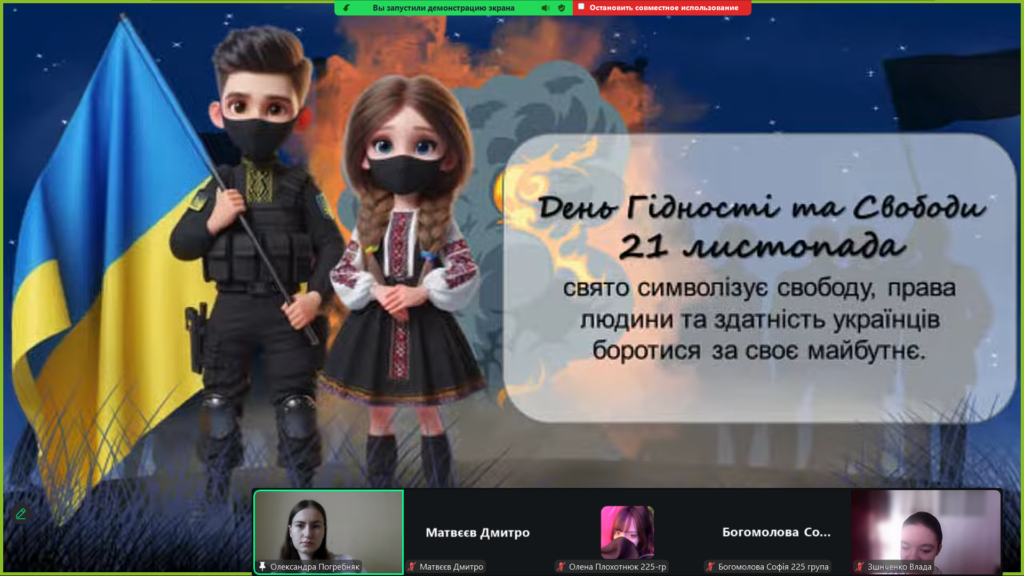 Викладачкою, Погребняк Олександрою Олегівною, були проведені кураторські години зі студентами другого курсу , присвячені двом важливим державним подіям: Дню пам’яті жертв Голодоморів та Дню Гідності і Свободи.