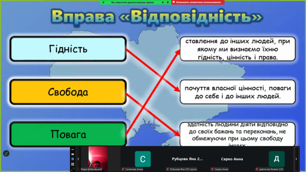 Під час виховних годин куратори разом зі студентами говорили про ключові цінності українського суспільства: гідність і свободу.