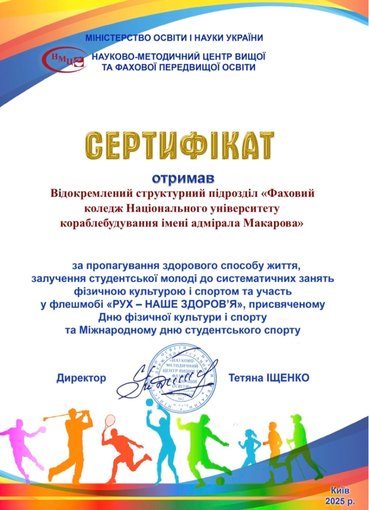 З радістю повідомляємо, що студенти ВСП «Фаховий коледж Національного університету кораблебудування імені адмірала Макарова» був відзначений Сертифікатом від Науково-методичного центру вищої та фахової передвищої освіти!