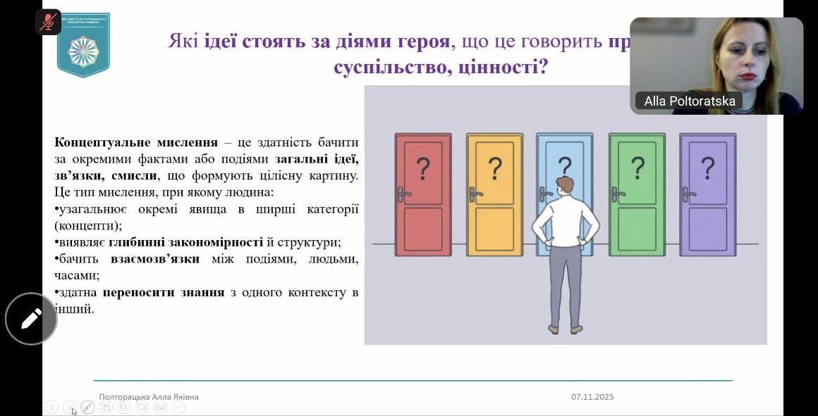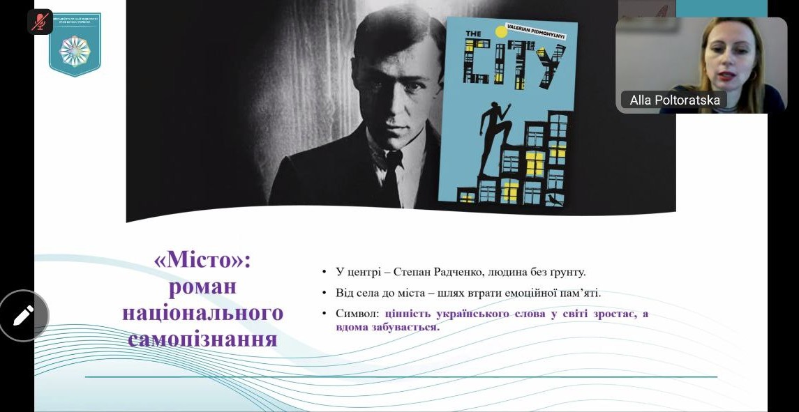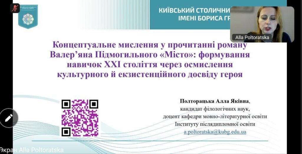 Викладачка української мови і літератури, Погребняк Олександра Олегівна, долучилася до вебінару «Концептуальне мислення у прочитанні роману Валер’яна Підмогильного «Місто»: формування навичок XXI століття через осмислення культурного й екзистенційного досвіду героя».