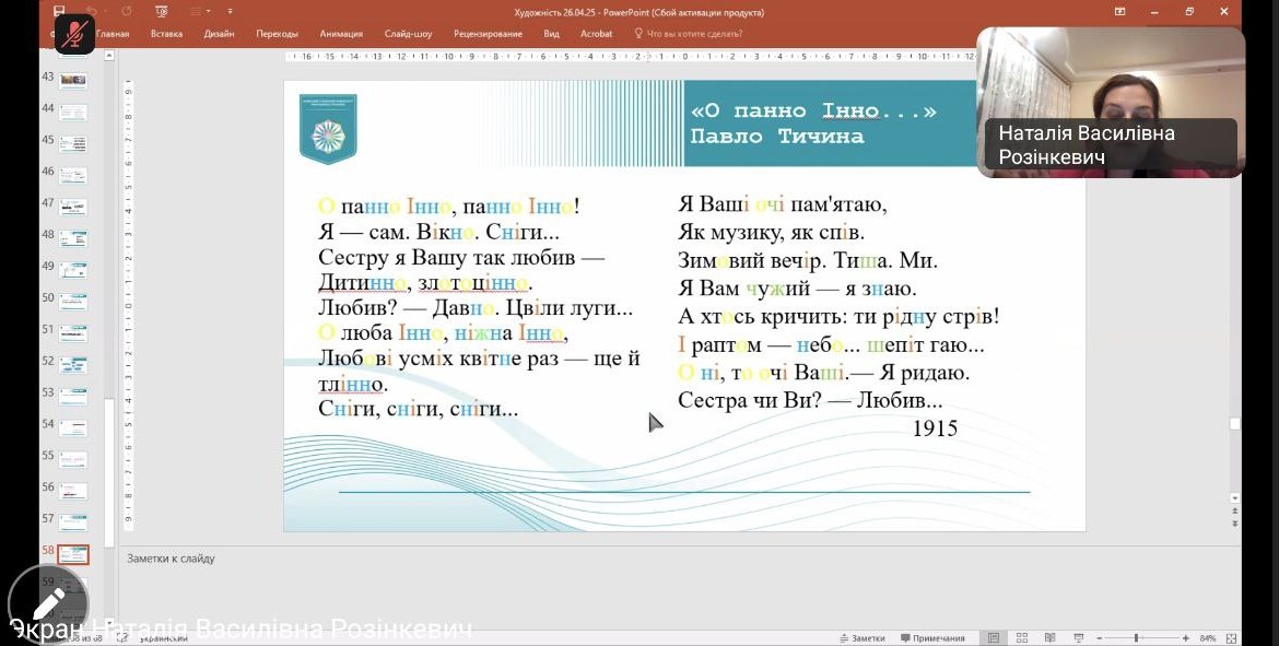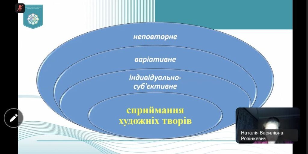 Викладачка української мови і літератури, Погребняк Олександра Олегівна, долучилася до змістовного й професійно орієнтованого вебінару «Художність як визначальний чинник якості, досконалості та цінності мистецького твору».