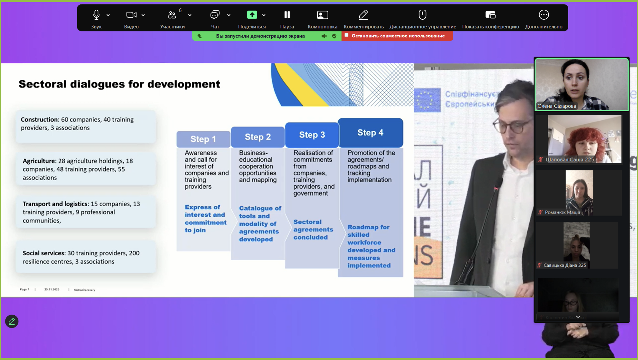 Особливу увагу було приділено процесам економічного відновлення та ролі людського капіталу як ключового інструмента трансформацій. Важливим акцентом стала інтеграція України до європейського кваліфікаційного простору, зокрема впровадження міжнародних стандартів та кращих практик у сфері кваліфікацій, професійного розвитку та освіти.