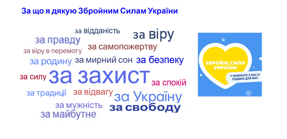 Онлайн-формат дав можливість провести низку інтерактивних активностей, зокрема: онлайн-дошку вдячності (Mentimeter), де студенти писали «За що я дякую ЗСУ», висловлюючи щиру підтримку та повагу українським захисникам; вікторину-квест «Ерудит ЗСУ», у якій учасники перевіряли свої знання про історію українського війська, його символіку, традиції та сучасні здобутки; творчий конкурс «Арт-код ЗСУ», у межах якого студенти створювали власні креативні роботи на тему «Моя Перемога», де кожен охочий міг створити власний художній чи літературний твір: малюнок, цифровий арт, фотоколаж, поезію, прозу тощо. У цих роботах студенти показували, якою вони бачать нашу майбутню Перемогу та яким, на їхню думку, буде мирне відновлення України.