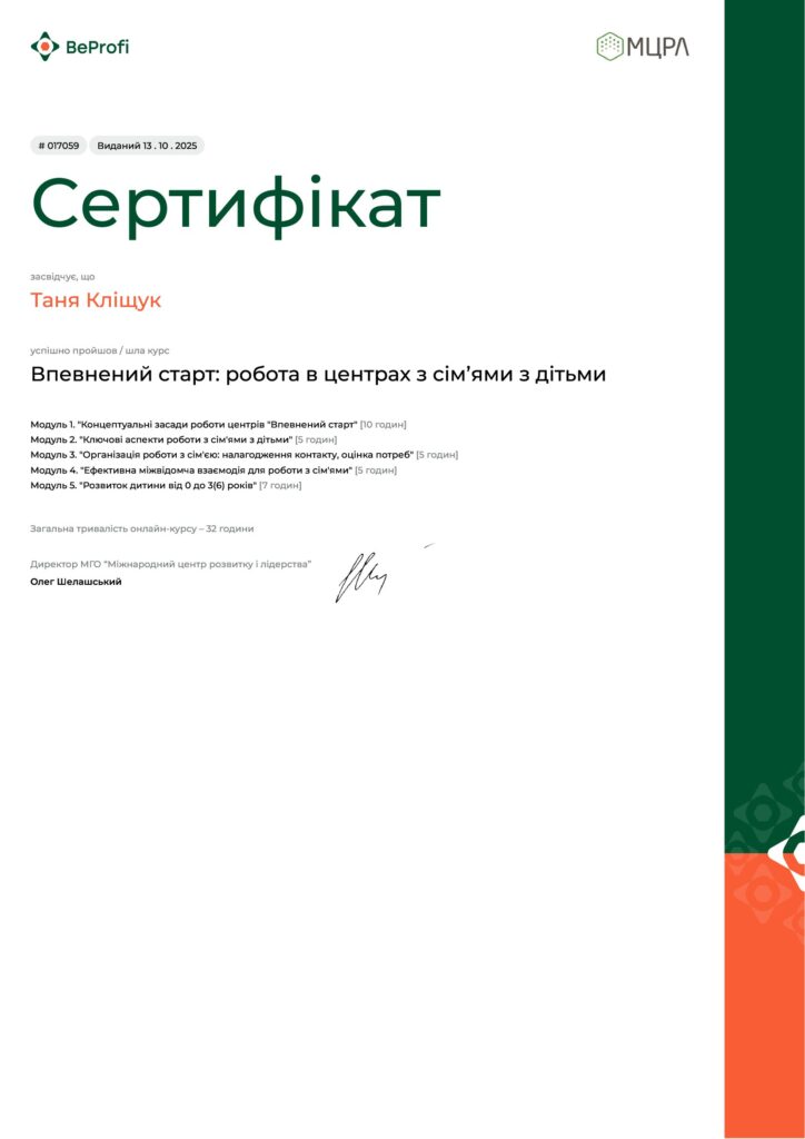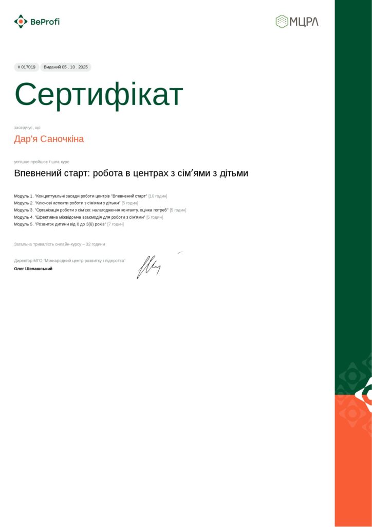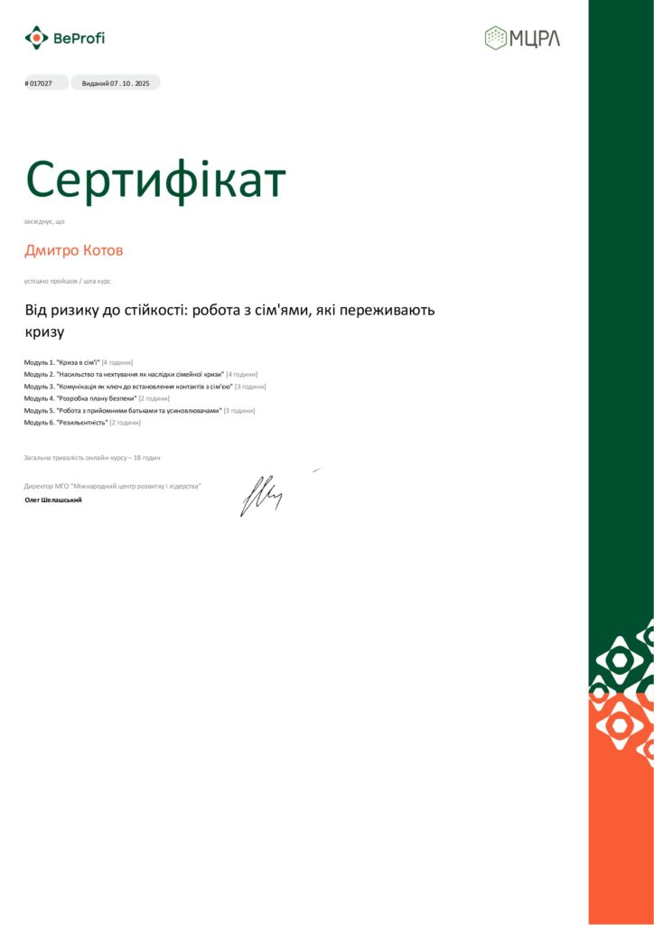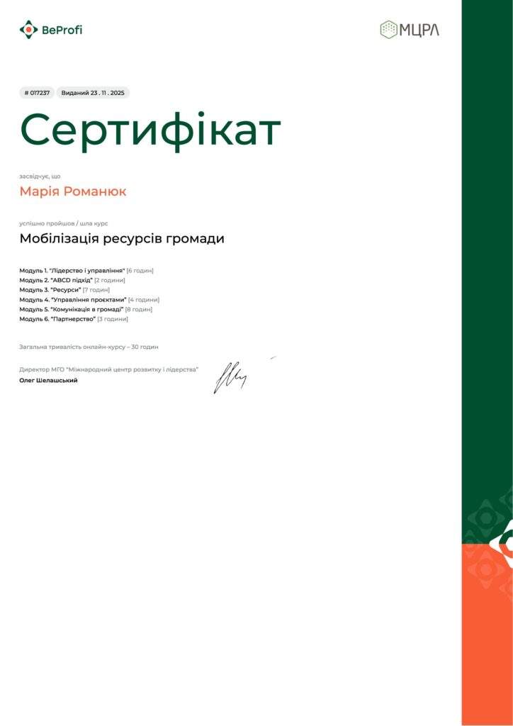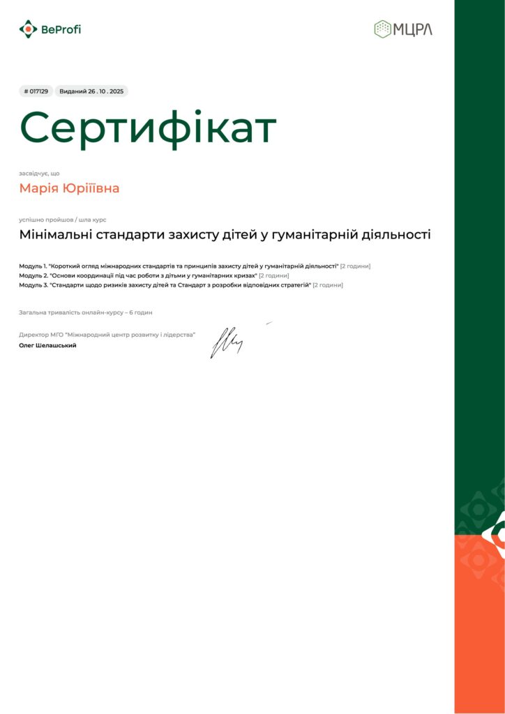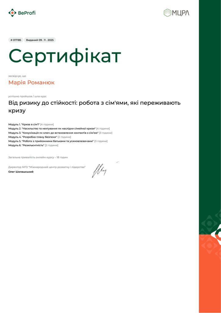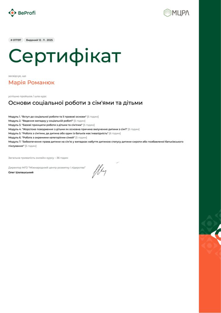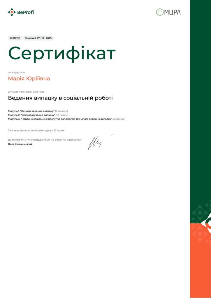 Сучасна соціальна робота вимагає не лише емпатії, а й глибоких фахових знань, особливо в умовах викликів сьогодення. Нещодавно здобувачі освіти 3 та 4 курсу спеціальності 231 Соціальна робота зробили важливий крок до професійного зростання, пройшовши навчання на онлайн-платформі BeProfi, створеній МГО «Міжнародний центр розвитку і лідерства» (МЦРЛ).