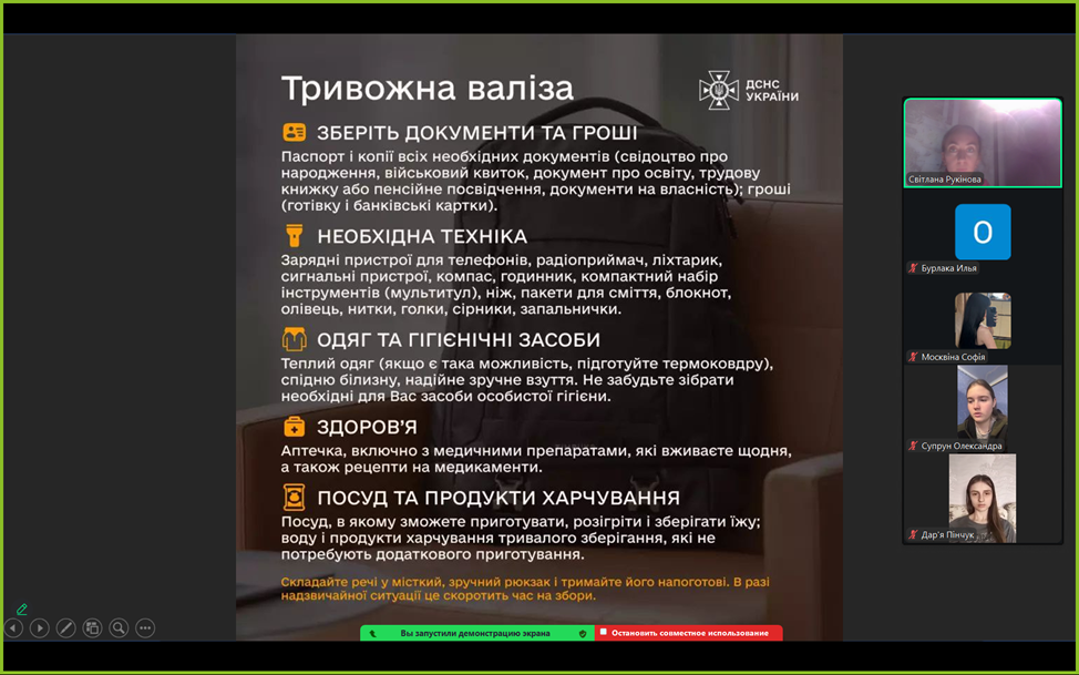 Куратори всіх академічних груп провели цільові інструктажі з питань безпеки життєдіяльності у онлайн-форматі. Під час зустрічей особливу увагу було приділено таким питанням: