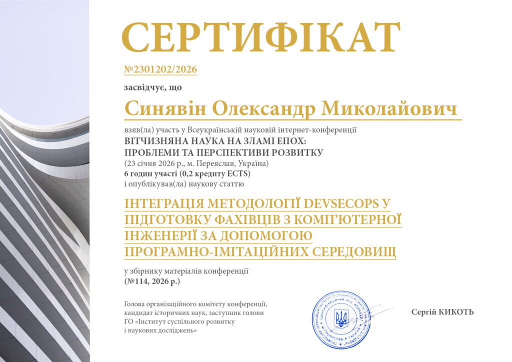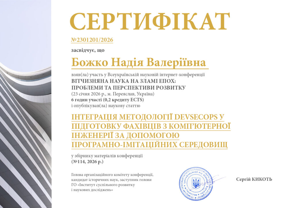 Наші викладачі презентували спільну наукову роботу на тему: «Інтеграція методології DevSecOps у підготовку фахівців з комп’ютерної інженерії за допомогою програмно-імітаційних середовищ».