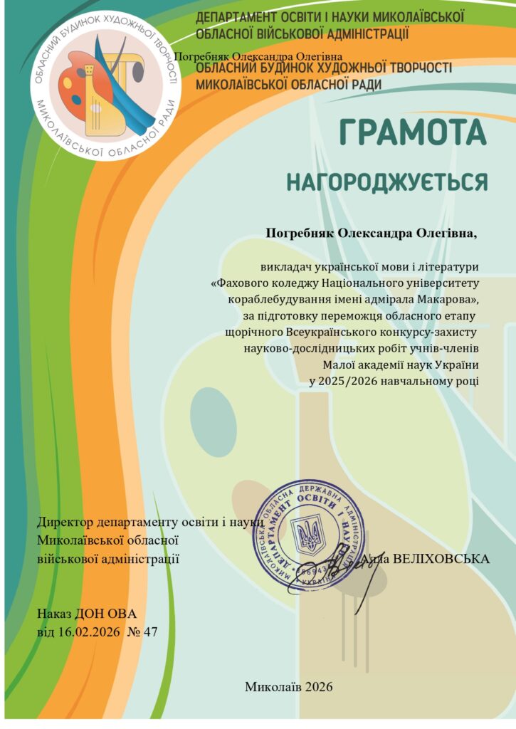 Студенти ІІ курсу під керівництвом викладачки української мови і літератури, Погребняк Олександри Олегівни, гідно представили свій навчальний заклад на обласному етапі щорічного Всеукраїнського конкурсу-захисту науково-дослідницьких робіт учнів-членів Мала академія наук України.