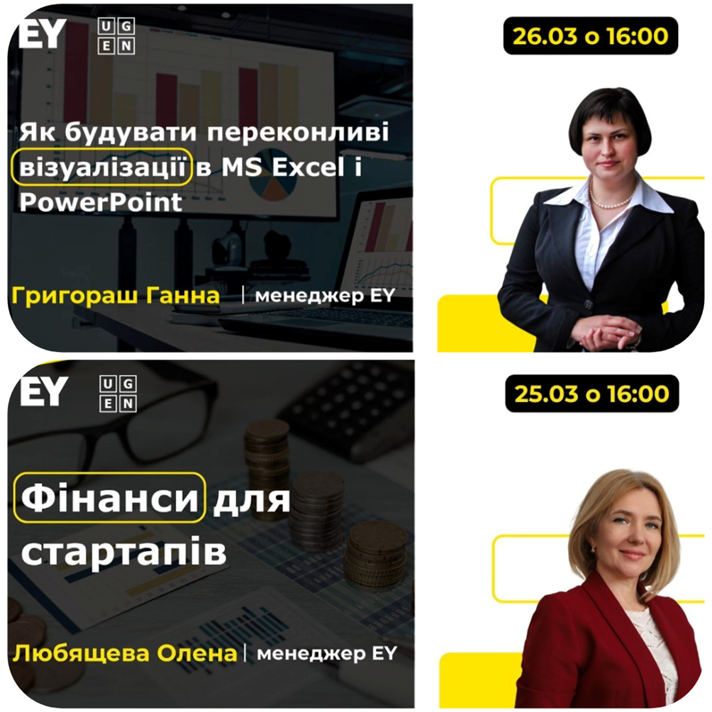 Екватор проєкту, 25 березня, був присвячений драйвовій темі «Фінанси для стартапів». Менеджер EY Олена Любящева розкрила завісу того, як створюється цінність компанії на ранніх етапах і що саме шукають інвестори – від магії Unit Economics (CAC, LTV) до методів оцінки за мультиплікаторами чи грошовими потоками. Наші викладачі детально вивчали структуру фінансових моделей, щоб надалі пояснювати студентам P&L, Balance Sheet та інші звіти через призму реального життєвого циклу бізнесу. Фінальним акордом 26 березня став вебінар Ганни Вікторівни Григораш про мистецтво переконливої візуалізації. Викладачі вдосконалювали навички роботи зі Smart Tables та PivotTables в MS Excel, вчилися створювати динамічні зв’язки з PowerPoint та трансформувати невдалі графіки у професійні слайди, які «промовляють» до аудиторії.