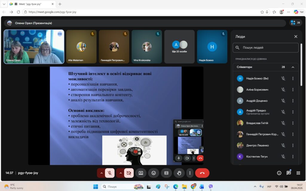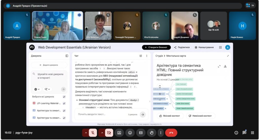 Під час зустрічі учасники обговорили сучасні методи використання нейромереж, ефективні підходи до персоналізації навчання та практичні кейси впровадження AI-інструментів у підготовку майбутніх фахівців. Наші викладачі активно ділилися досвідом та вивчали новітні стратегії, які дозволяють зробити навчання більш інтерактивним та адаптованим до вимог сучасного ринку праці.