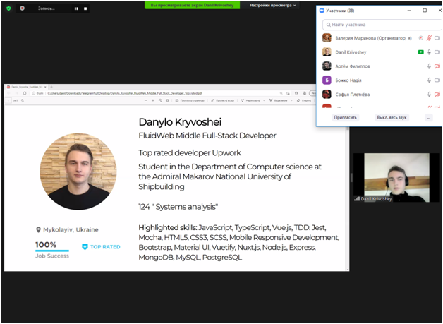 Даніїл Кривошей та Дмитро Пазенко розповіли про всі навички, що потрібні в професії «Front end developer» та «back end developer». Розкрили секрети «З чого ж почати?!». Довели, що немає нічого неможливого в поєднанні роботи та навчання, якщо ти досить вмотивований.
