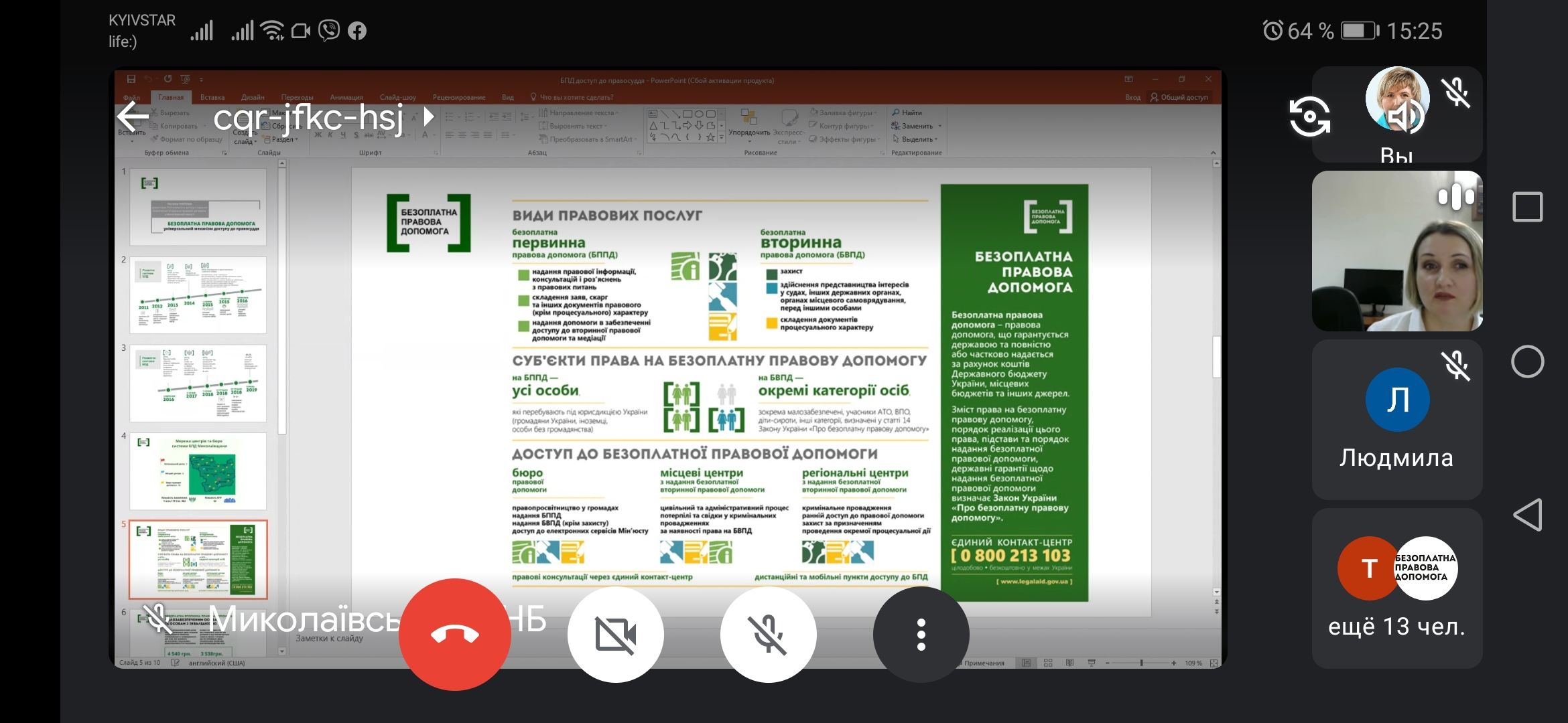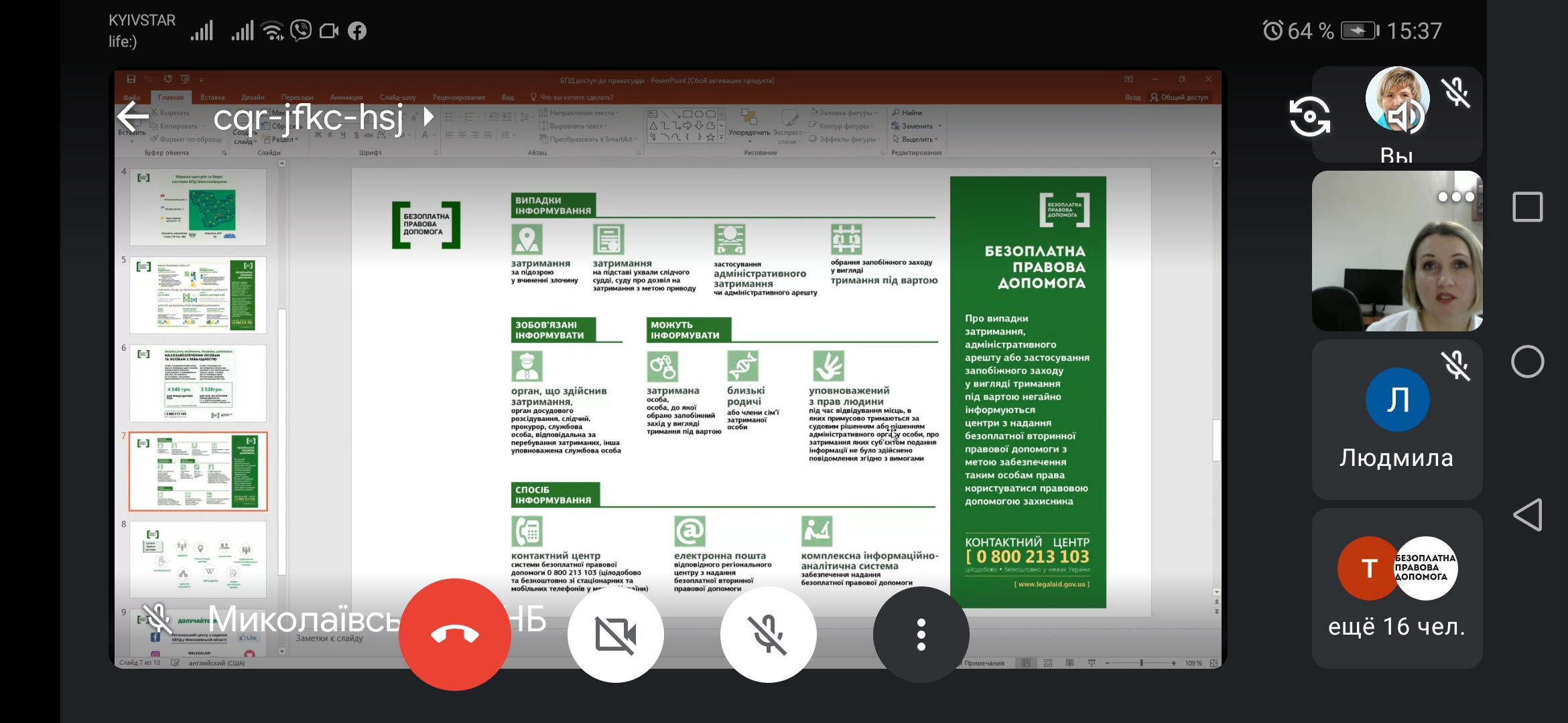 І як відзначила директорка Регіонального центру з надання БВПД у Миколаївській області Наталія Вікторівна, рівний доступ до правосуддя це основний принцип верховенства права. «Конституція України гарантує, що кожна людина має право на професійну правничу допомогу, але буває так, що людина не може самостійно найняти адвокати, в такому випадку на допомогу приходять працівники та адвокати системи безоплатної правової допомоги», – зазначила очільниця системи БПД Миколаївщини. Протягом онлайн-заняття учасники говорили про розвиток системи БПД в Україні в цілому та на Миколаївщині зокрема, так, наразі в Миколаївській області працює Регіональний центр та два місцевих центрів з надання безоплатної вторинної правової допомоги, а також 16 бюро правової допомоги у різних районах області. Крім цього, на базі партнерських організацій забезпечена робота консультативних пунктів надання правової допомоги.
