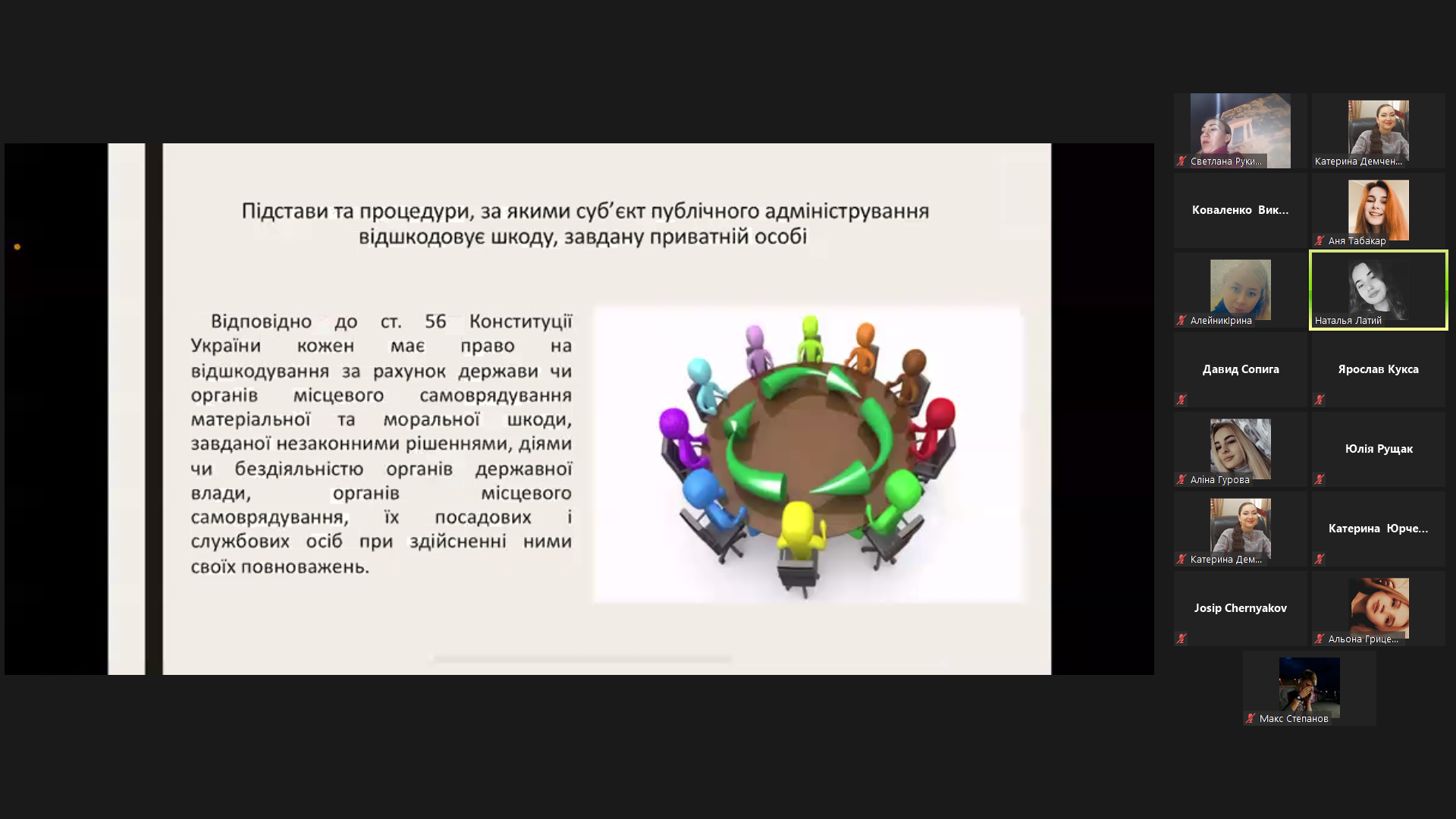 ЛАТІЙ НАТАЛЯ, студентка 315 групи, спеціальності «Право» – Відшкодування шкоди, завданої суб’єктами публічної адміністрації приватним особам;
