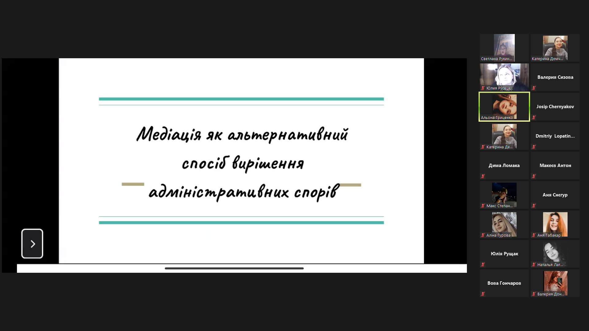 ГРИЦЕНКО АЛЬОНА, студентка 315 групи, спеціальності «Право» – Медіація як альтернативний спосіб вирішення адміністративних спорів;