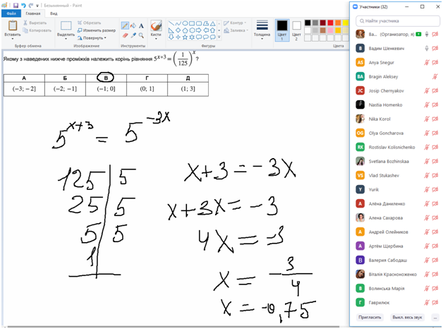 Відповідно до додатково запланованих майстер-класів з підготовки студентів коледжу до успішного складання державної підсумкової атестації у форматі зовнішнього незалежного оцінювання якості їх знань 2 березня 2021 року у Відокремленому структурному підрозділі «Фаховому коледжі Миколаївського національного університету імені В.О.Сухомлинського» викладачем МАРІНОВОЇ ВАЛЕРІЄЮ ВІТАЛІЇВНОЮ було проведено черговий майстер-клас з успішної підготовки до ЗНО з математики. Тема «Рівняння та нерівності» є досить об’ємною, тому сьогоднішній майстер-клас став одним із майстер-класів циклу даної теми. Тож, під час сьогоднішнього онлайн заходу ми розглянули складні речі простою мовою, щоб студенти різних рівнів знань могли успішно виконати завдання ЗНО з математики. Далі буде… До нових зустрічей, друзі!