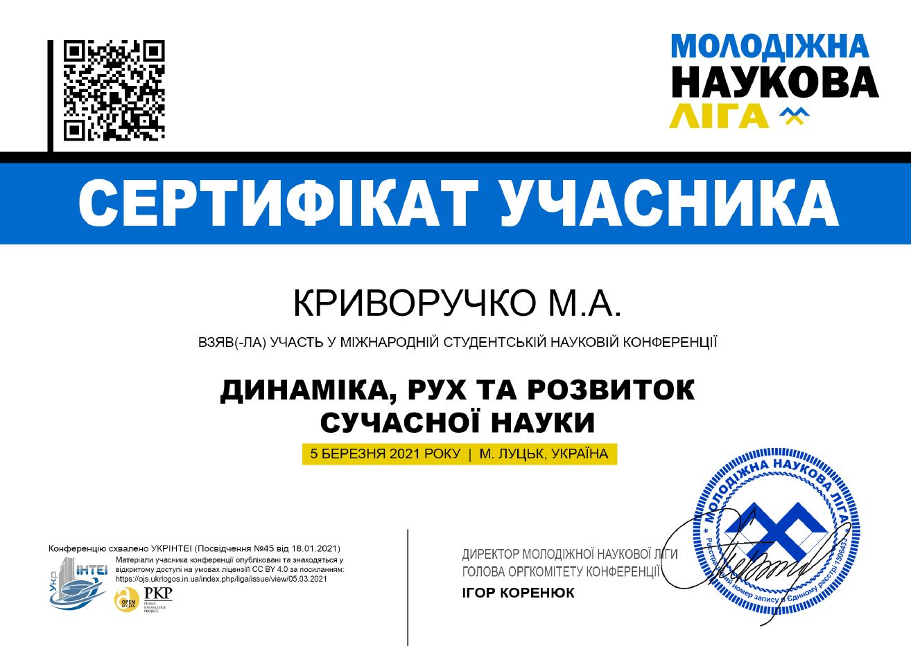 05 березня 2021 року відбулася Міжнародна науково-практична конференція «Динаміка, рух та розвиток сучасної науки», м. Луцьк, Україна. Завдання конференції – формування зацікавленості молоді до наукової роботи.
