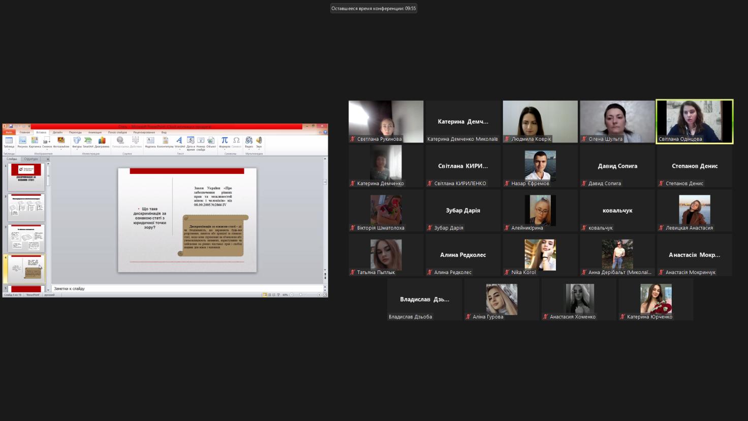 22 лютого 2022 року Регіональним центром з надання безоплатної вторинної правової допомоги у Миколаївській області за сприяння викладача правових дисциплін Рукінової Світлани Сергіївни та волонтера з надання безоплатної правової допомоги студентки 4 курсу спеціальності «Право» Демченко Катерини було проведено для викладачів та студентів Відокремленого структурного підрозділу «Фаховий коледж Миколаївського національного університету імені В.О.Сухомлинського» правоосвітній вебінар: «Запобігання та протидія дискримінації за гендерною ознакою».