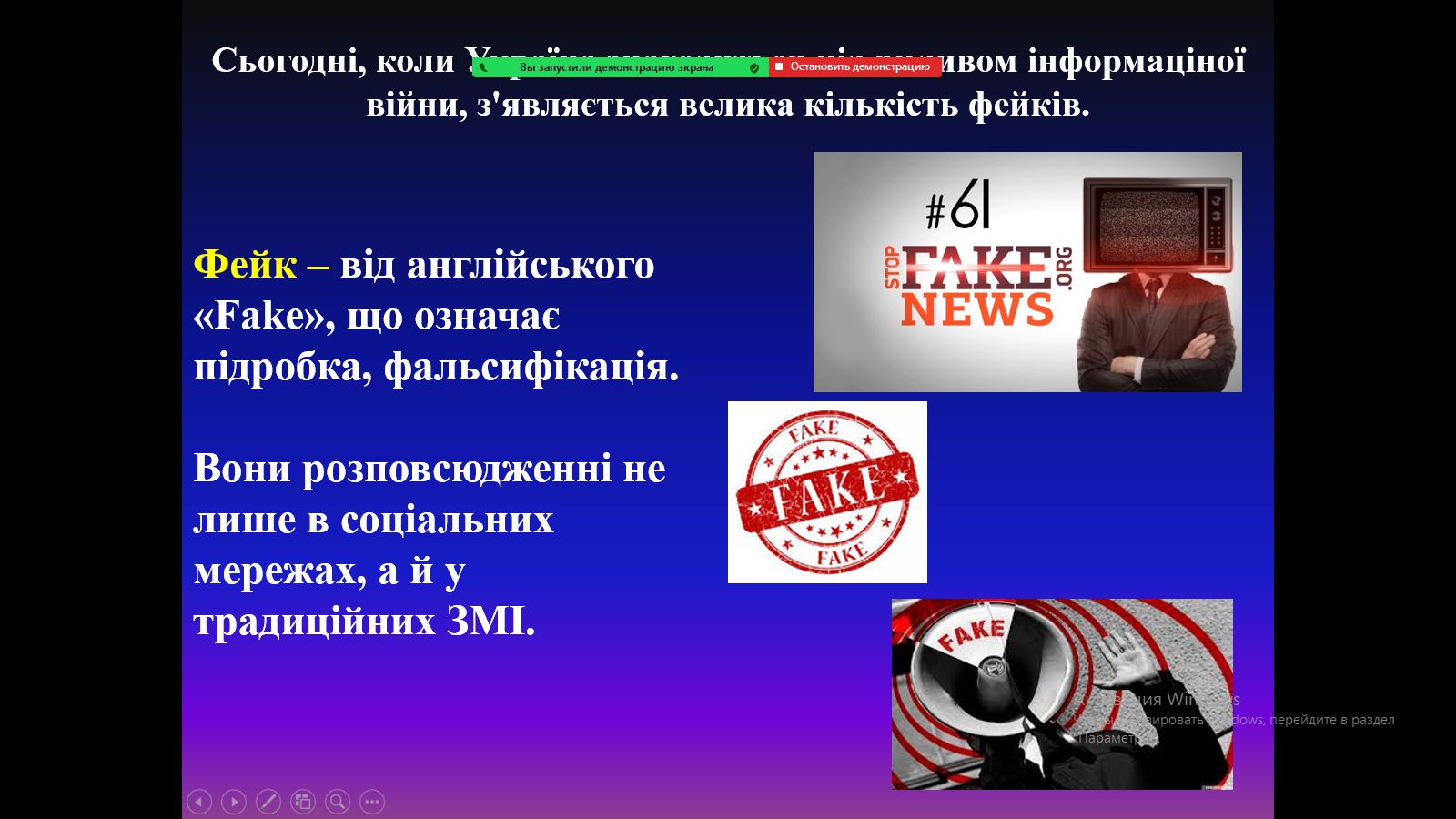 Інформація – нині зброя, тому пошук та аналіз правдивої та якісної інформації вкрай необхідна навичка для наших студентів, особливо в умовах війни. Так, 2 травня 2022 року у ВСП «Фаховий коледж МНУ імені В.О.Сухомлинського» з метою формування навичок медіаграмотністі, викладачем в/к, к.е.н. Волошиною-Сідей В.В. було проведено виховну годину для здобувачів освіти спеціальності 072 Фінанси, банківська справа та страхування (235 група) з метою формування навичок: критично сприймати інформацію, протидіяти маніпуляціям, усвідомити цінність високоякісної інформації. Особлива увага була приділена розпізнанню фейкової інформації, так як у віртуальному світі відсутня цензура, знімаються заборони і обмеження морально-етичного і соціального планів, тому виникає нагальна необхідність усвідомлювати якість та правдивість інформації. Зі студентами були проведені тестові вправи на розпізнання фейків та надано інформацію з приводу самостійного покращення рівня медіаграмотності.
