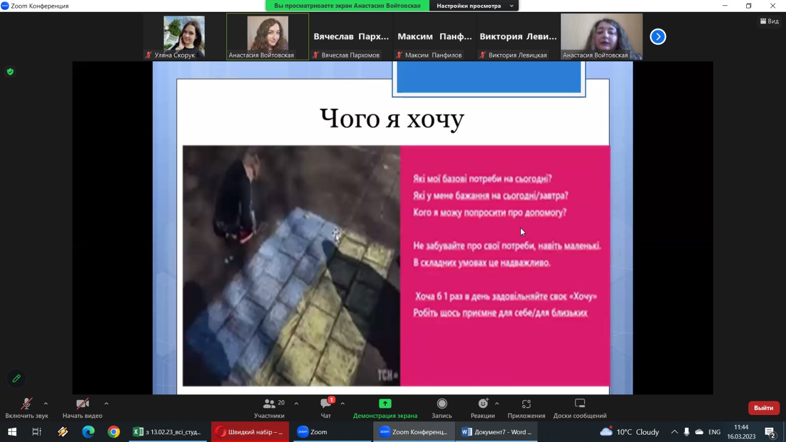 16 березня 2023 року викладачем І категорії Анастасією Войтовською був проведений відкритий онлайн-тренінг на тему: «Ресурсування або де взяти ресурс», під час якого учасники спробували зануритись в захопливу подорож до себе та відкрити свої внутрішні джерела, розглянули матеріал щодо внутрішніх опор, мали можливість опрацювати практичні психологічні вправи для збереження ресурсу та заспокоєння.