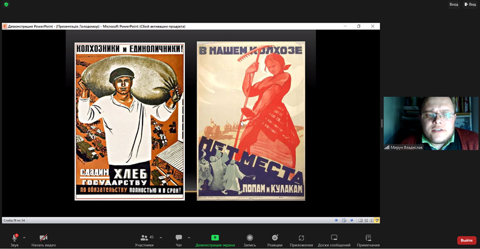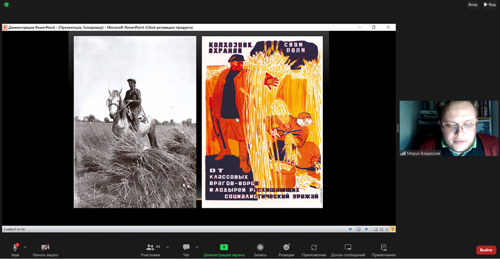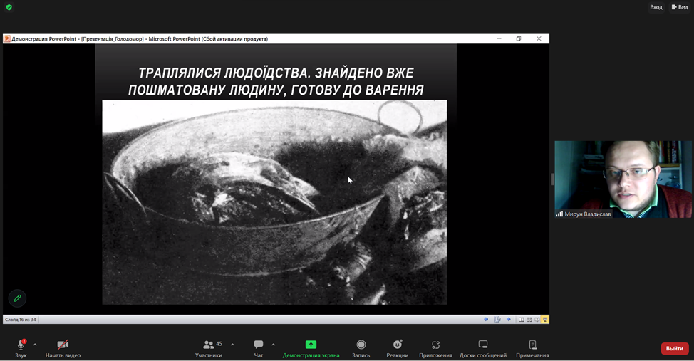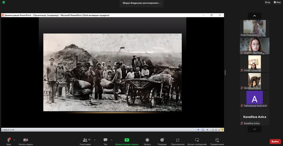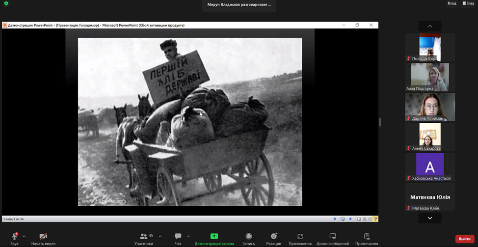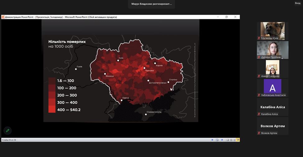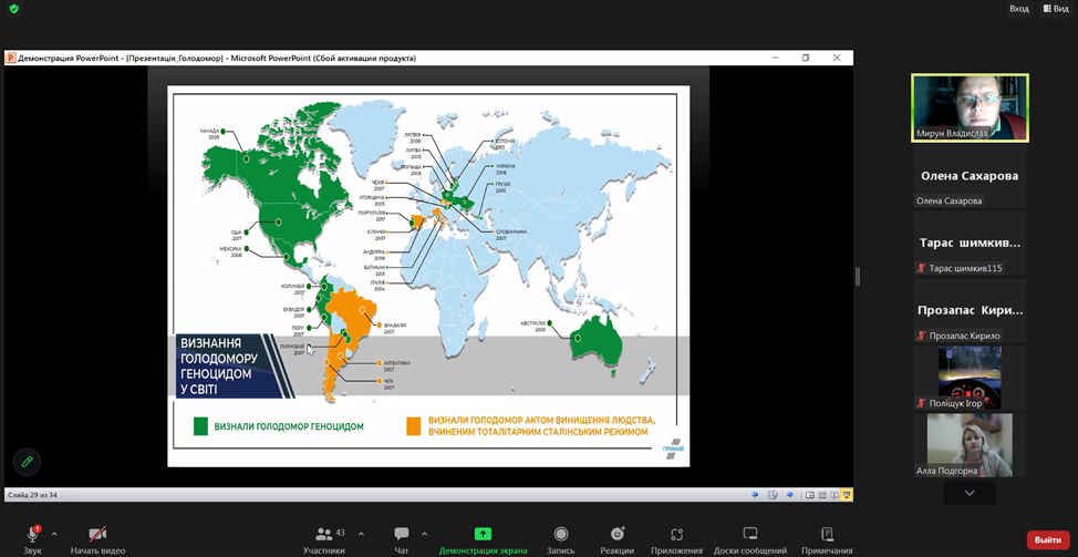З метою гідного вшанування пам’яті жертв геноциду українського народу у ВСП «Фаховий коледж МНУ ім. В. О. Сухомлинського» викладачем Мируном Владиславом Віталійовичем було проведено онлайн-урок пам’яті «Голод – геноцид 1932-1933 років на Миколаївщині».