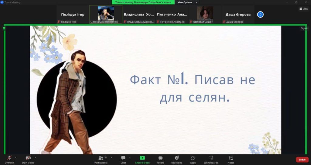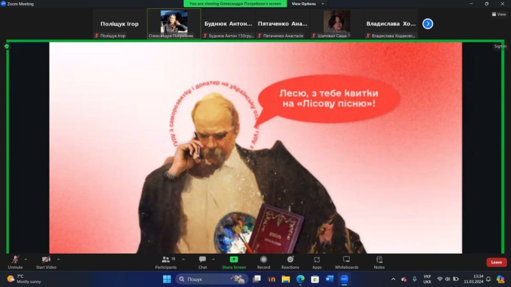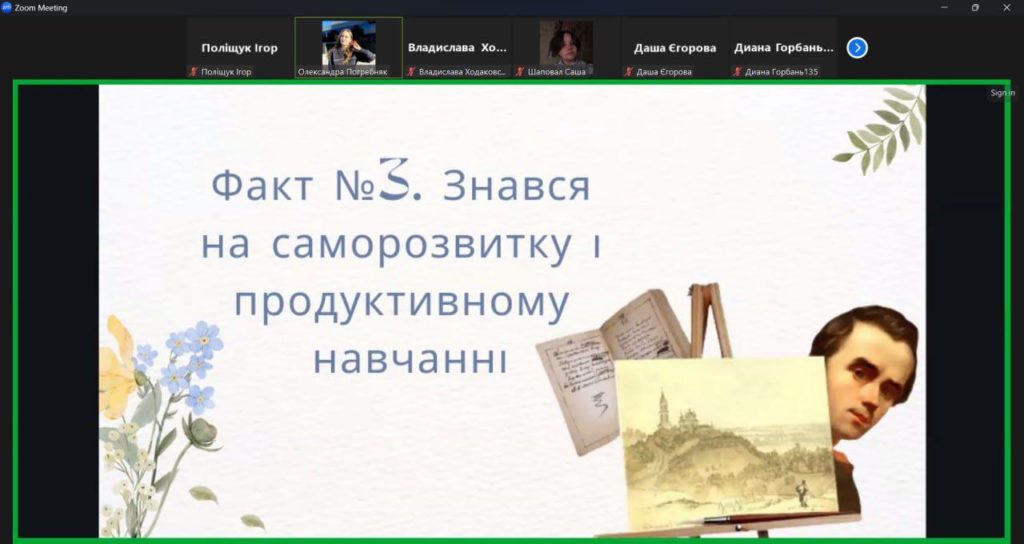 На честь 210 років з дня народження Тараса Шевченка, був проведений захід викладачкою української мови і літератури Погребняк Олександрою Олегівною, для студентів першого курсу. Журливий митець старшого віку, що схилився над своєю черговою поезією про важку долю, — ні, це не про Тараса Шевченка! На заході були розглянуті незвичайні факти з біографії Тараса Шевченка. Він знавець моди, любитель культурних івентів і провокаційний письменник, що раз-по-раз шокував публіку.