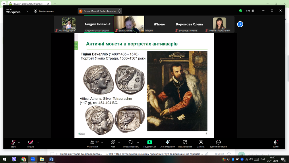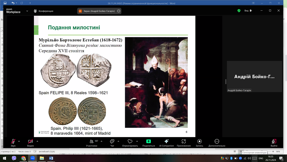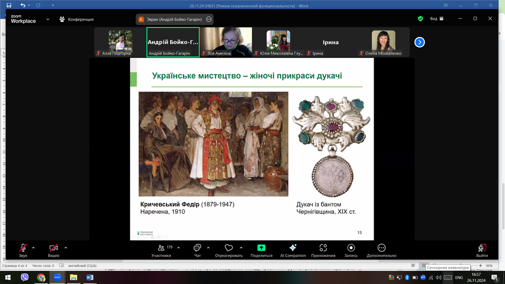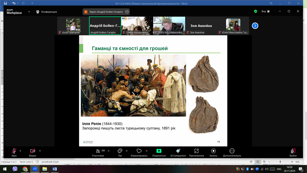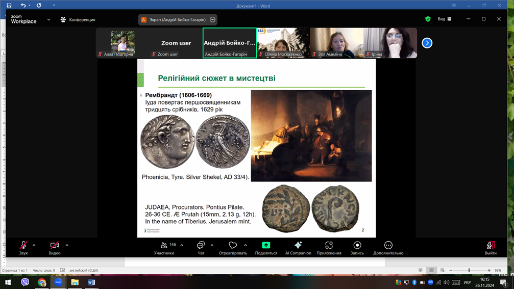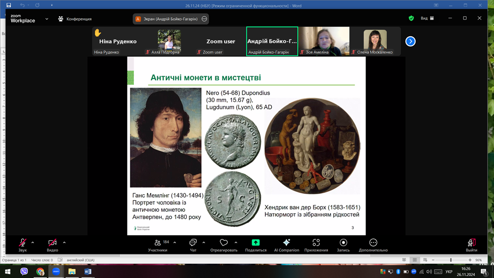 26 листопада 2024 р. викладачка фінансово-економічних дисциплін коледжу Алла Подгорна взяла участь у спеціальному віртуальному турі для освітян з теми «Історії грошового обігу України: нумізматика в мистецтві», організованим Національним банком України. На вебінарі було розглянуто матеріали щодо відображення грошей в мистецтві, зокрема виокремлено релігійний сюжет, побутовий сюжет; відображення монет в українському мистецтві – жіночі прикраси дукачі ХІХ ст. Окремо представлено класичне мистецтво в сучасній нумізматиці.