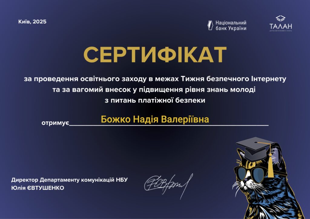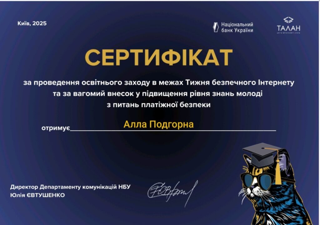 З 10 до 16 лютого 2025 року Національний банк України провів Тиждень безпечного Інтернету, до участі в якому активно долучилися викладачі нашого коледжу. Загалом, 1380 освітян по всій країні взяли участь у цьому масштабному просвітницькому заході.