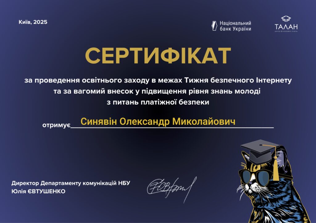 Під час проведених заходів студенти отримали практичні поради та рекомендації стосовно захисту своїх особистих даних, безпечного здійснення онлайн-платежів, а також дізналися про типові схеми шахрайства та способи протидії їм.